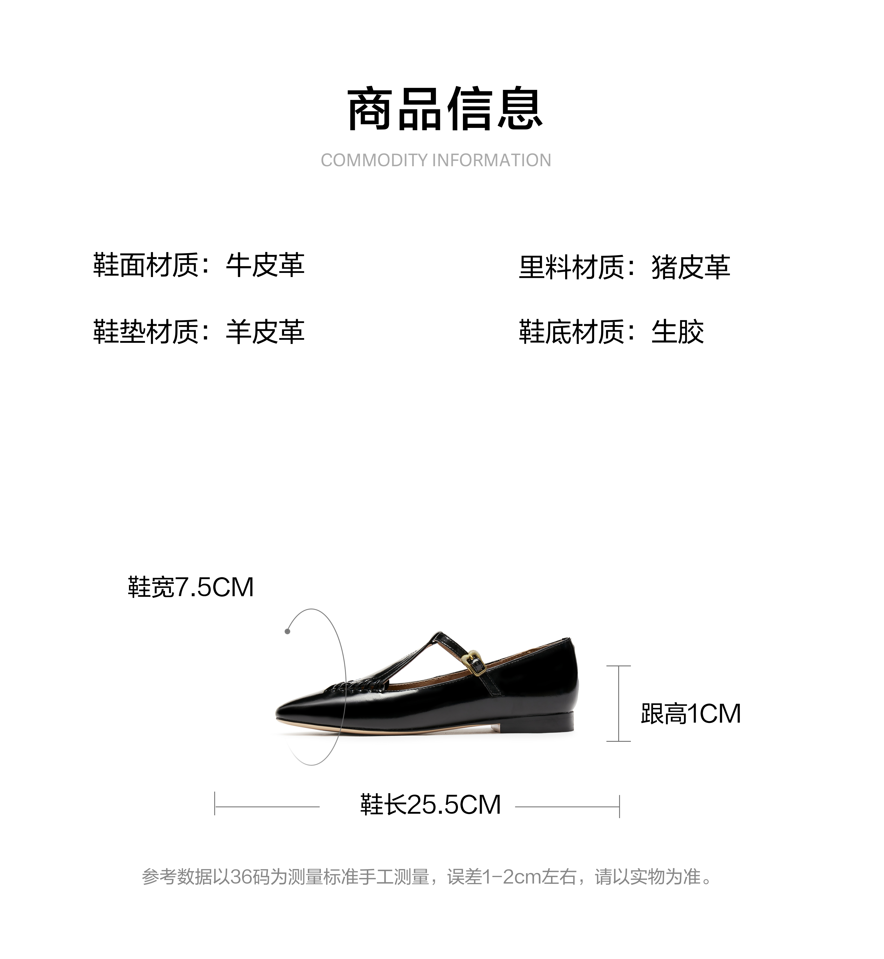 | 参考鞋宽(女):7.5CM | 风格:复古 | 年份:2024年 | 色系:黑色 | 参考标准尺码:36码 |
