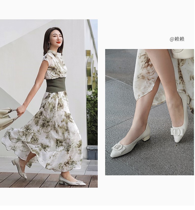 | 鞋头款式:尖头 | 鞋底材质:橡胶底 | 鞋面图案:纯色 | 内增高:无 | 鞋跟形状:粗跟 |