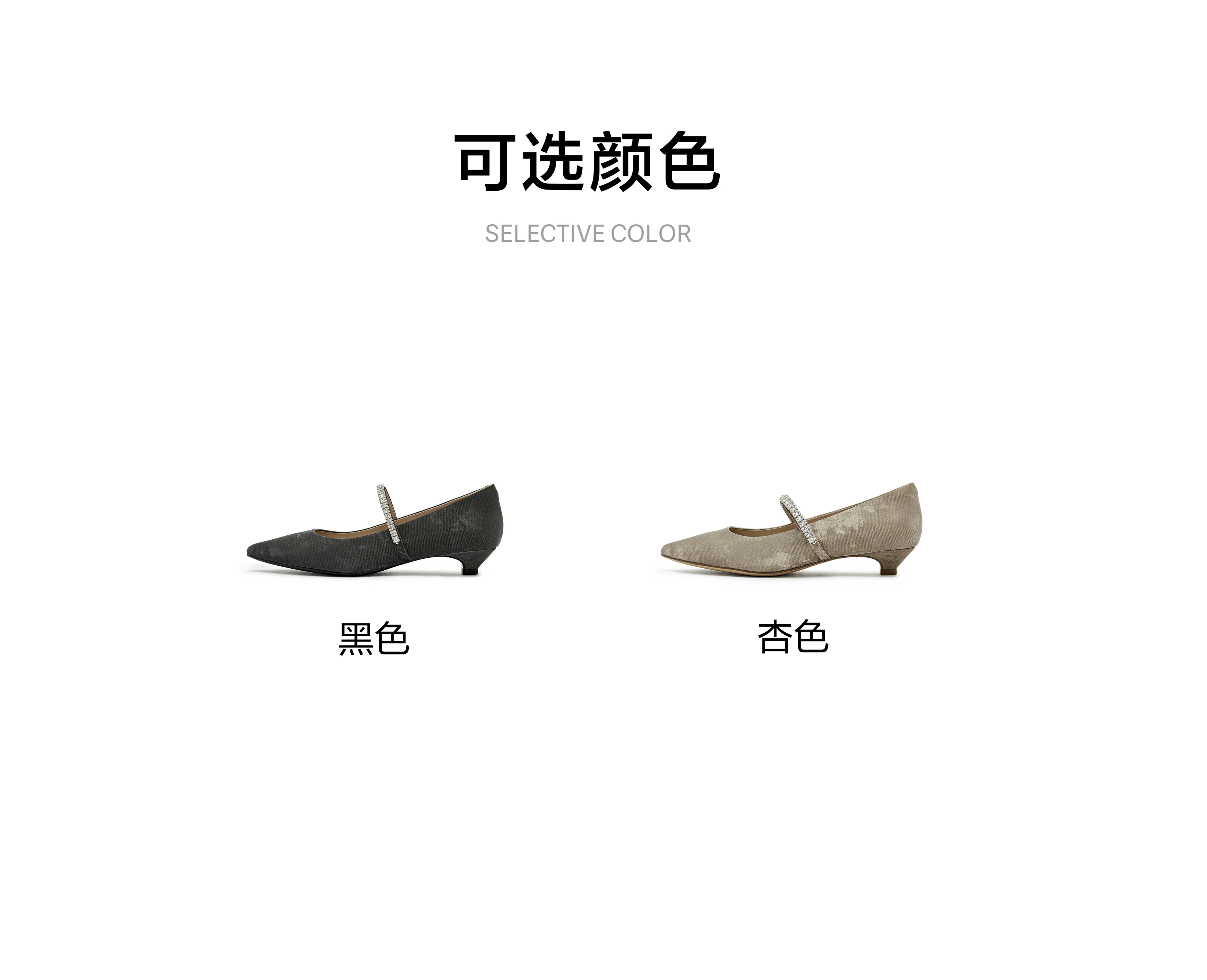 | 鞋头款式:尖头 | 鞋底材质:生胶 | 鞋面图案:纯色 | 内增高:无 | 鞋跟形状:锥形跟 |