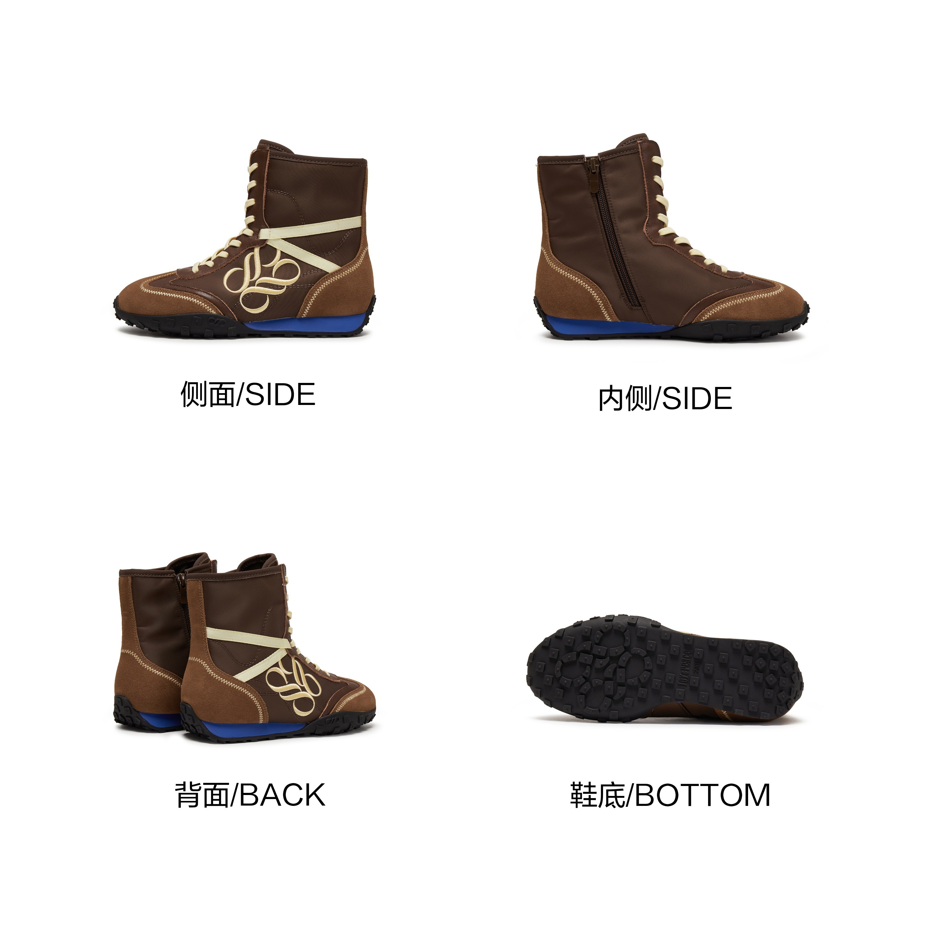 | 鞋底材质:橡胶底 | 靴筒内里材质:猪皮革织物 | 内增高:无 | 鞋面材质:织物牛皮革牛剖层革 | 闭合方式:系带 |