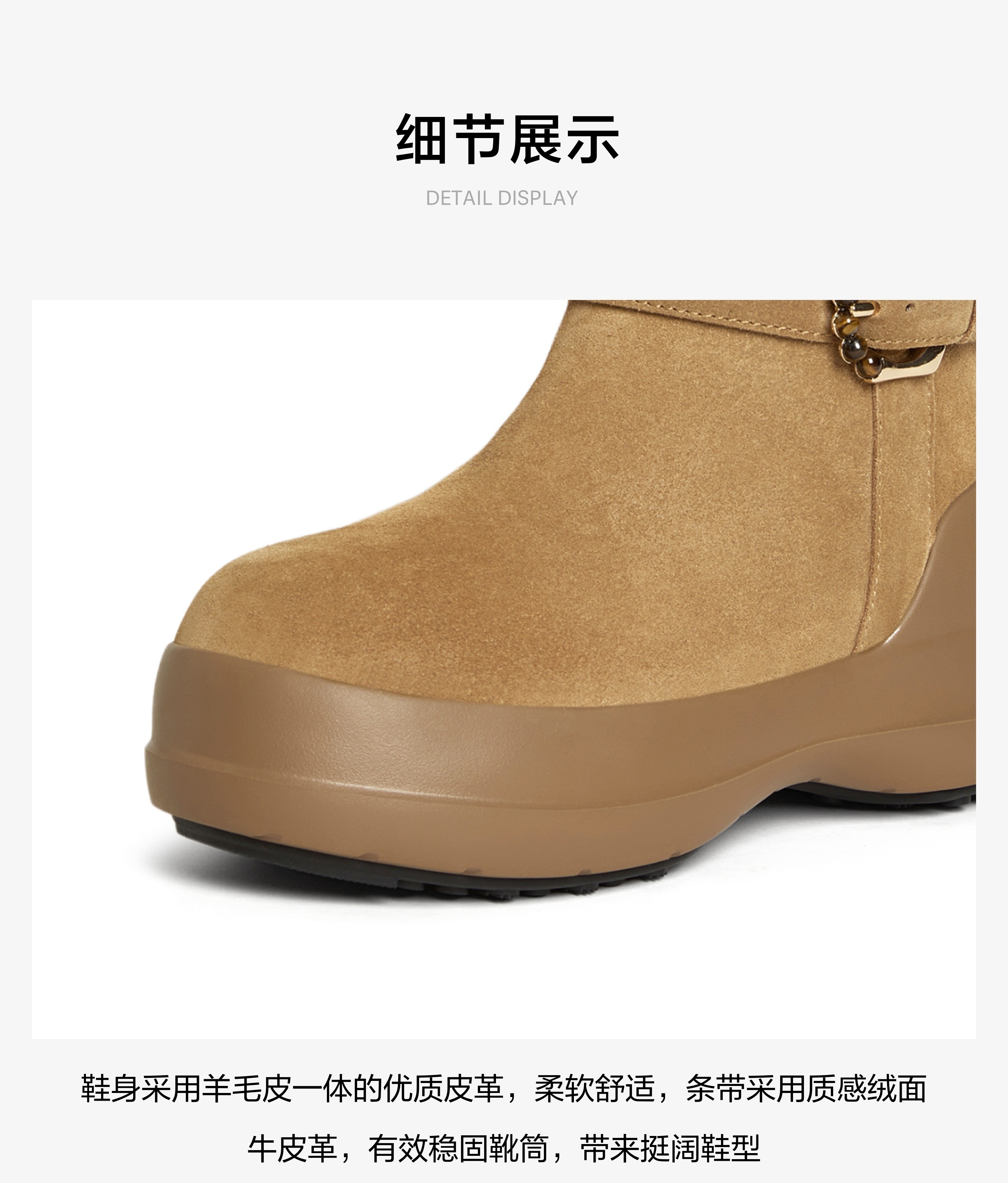 | 风格:休闲 | 鞋面内里材质:羊毛皮 | 色系:棕色 | 跟高数值:4CM | 性别:女子 |