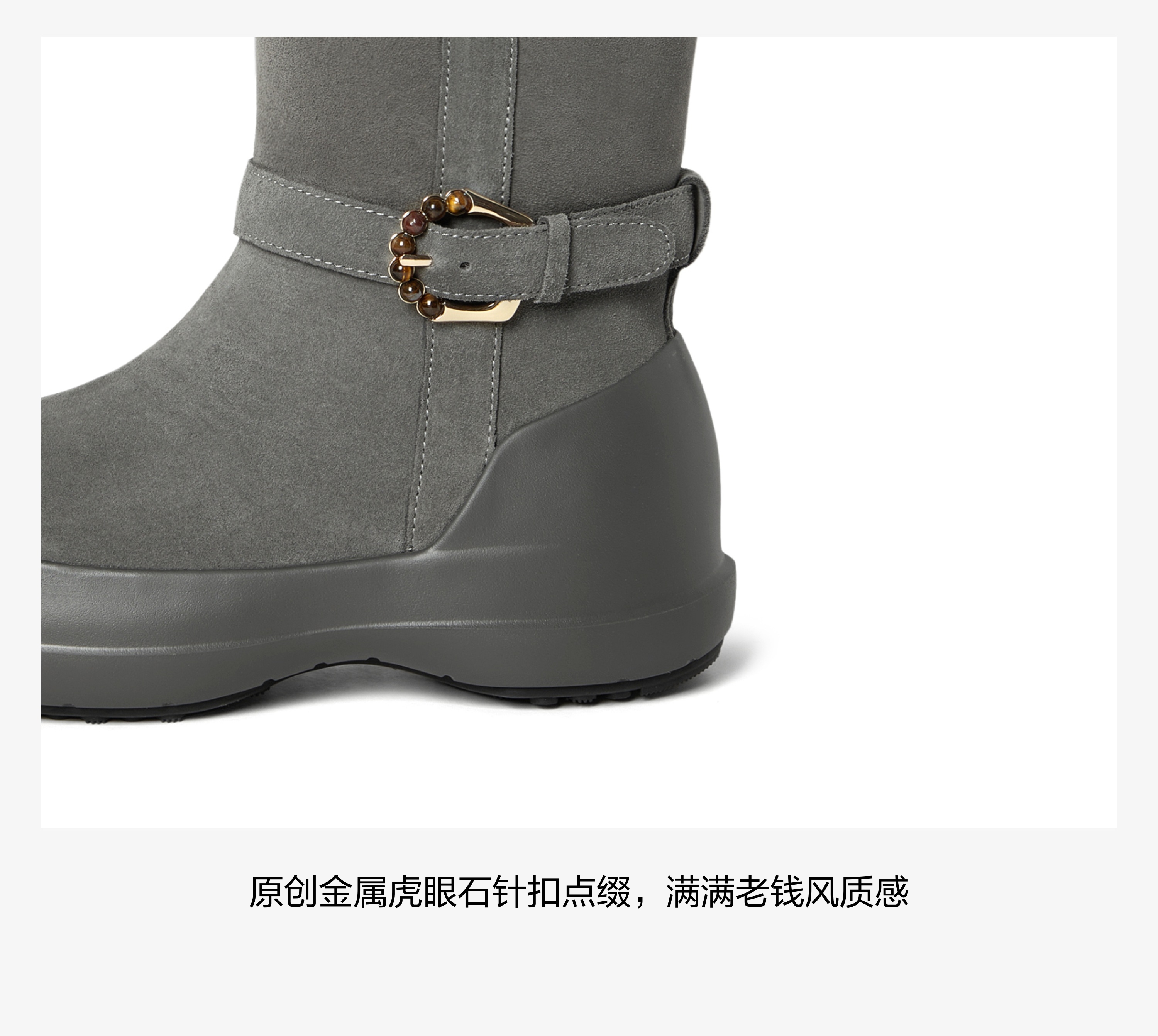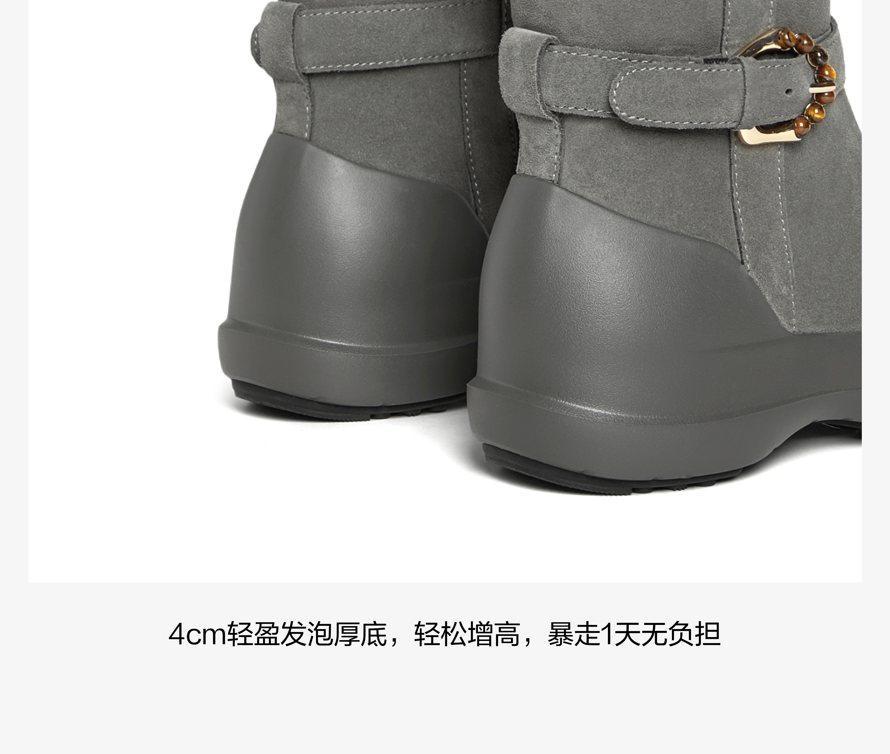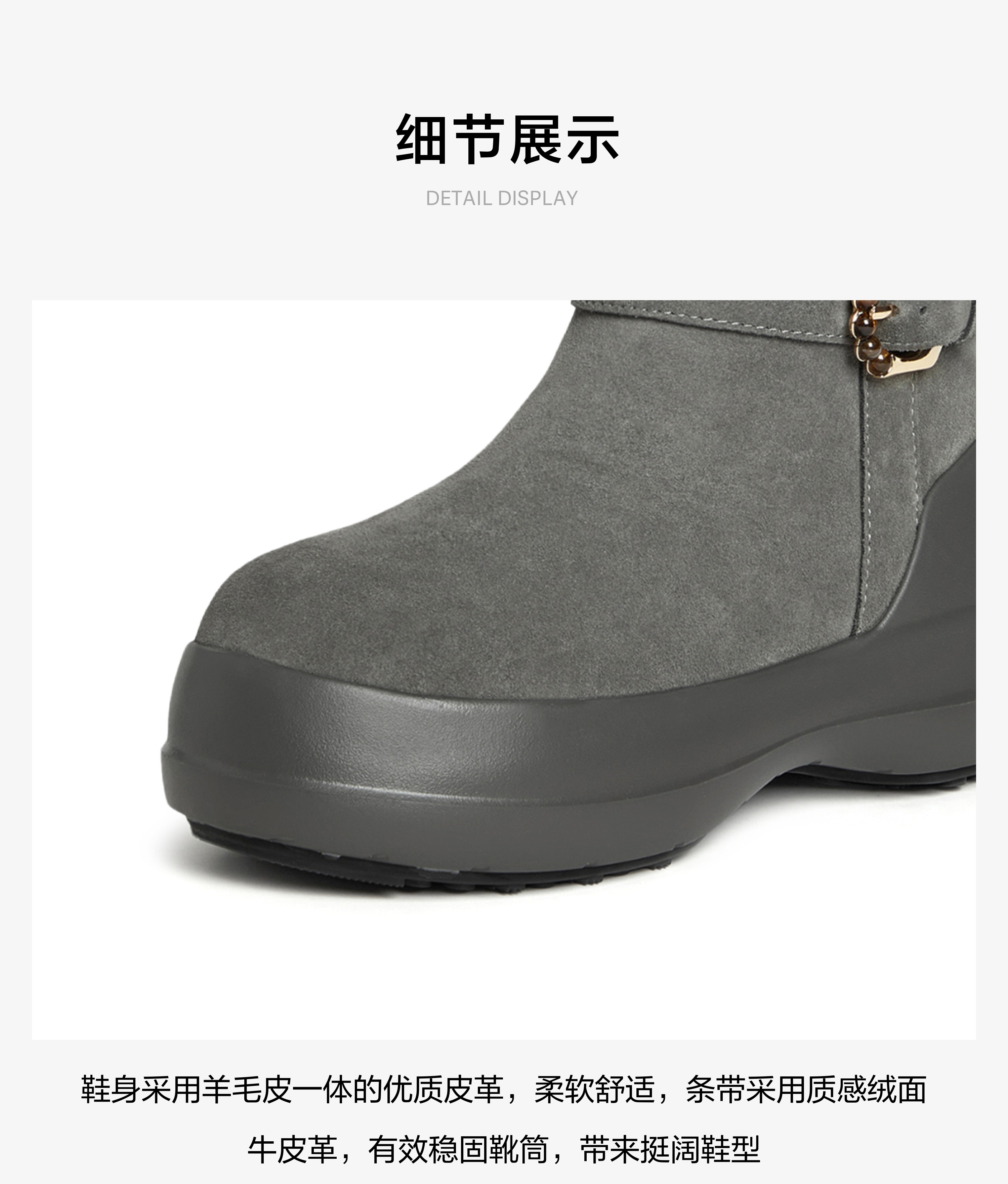| 风格:休闲 | 鞋面内里材质:羊毛皮 | 色系:灰色 | 跟高数值:4CM | 性别:女子 |