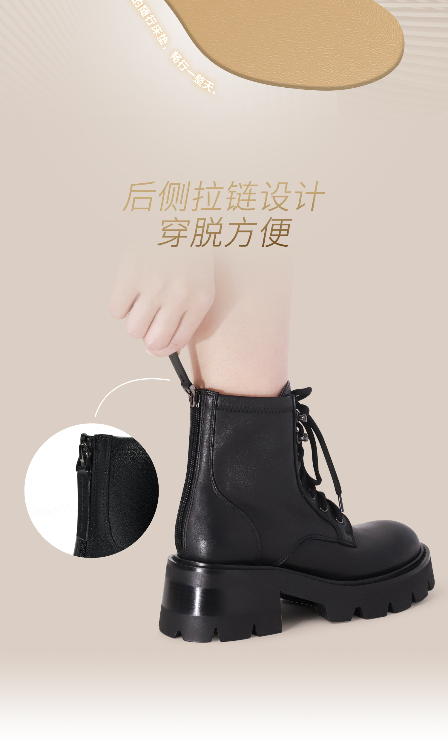 | 鞋底材质:橡胶发泡底 | 靴筒内里材质:猪皮革 | 内增高:无 | 鞋面材质:牛皮革羊皮革 | 闭合方式:后拉链 |