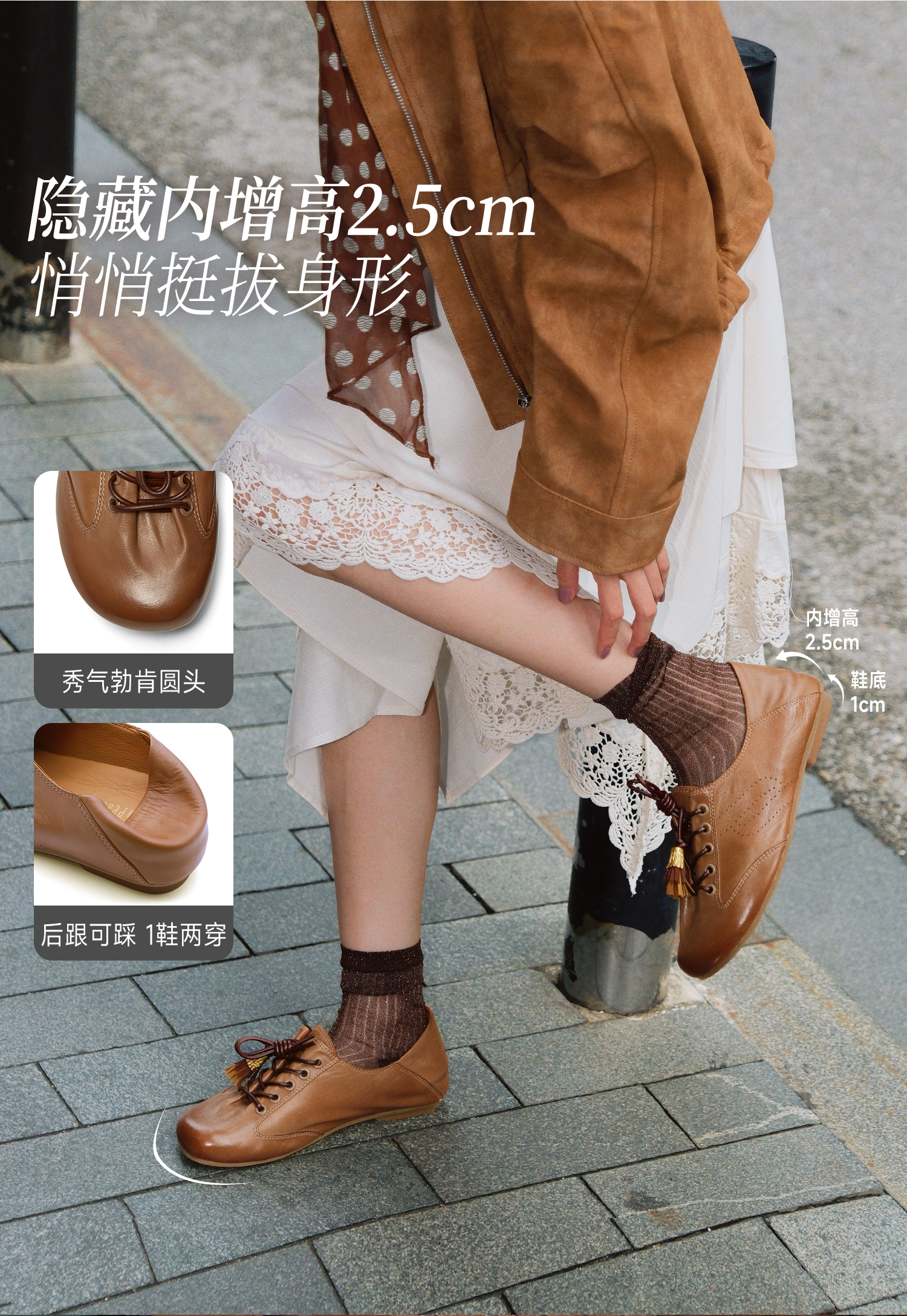 | 鞋头款式:圆头 | 鞋底材质:橡胶底 | 鞋面图案:纯色 | 内增高:1.5CM | 鞋跟形状:平跟 |