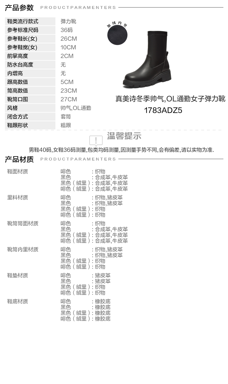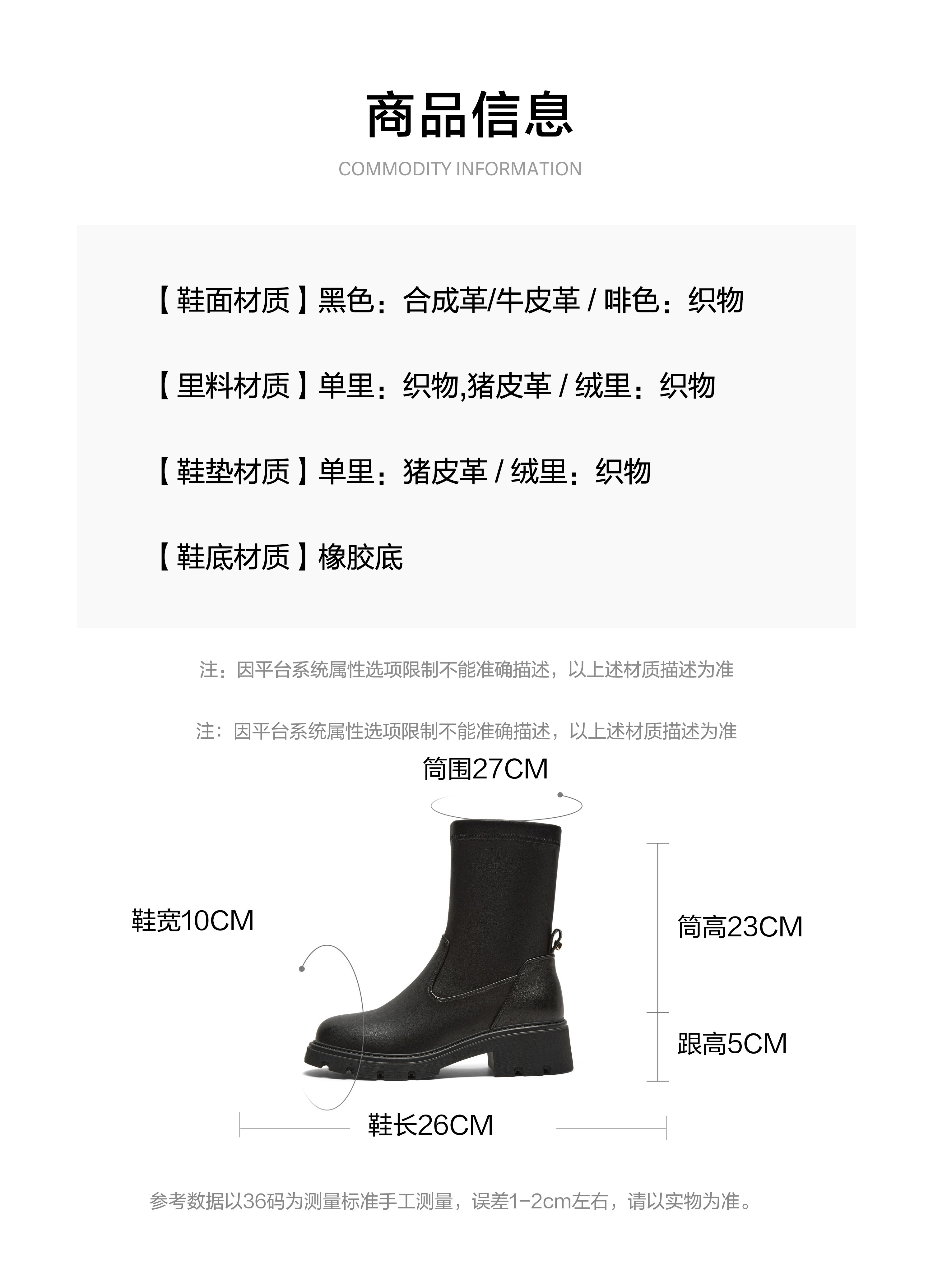 | 配跟:无 | 靴筒口围:27CM | 上市时间:2025年冬季 | 鞋类流行款式:弹力靴 | 鞋头款式:圆头 |