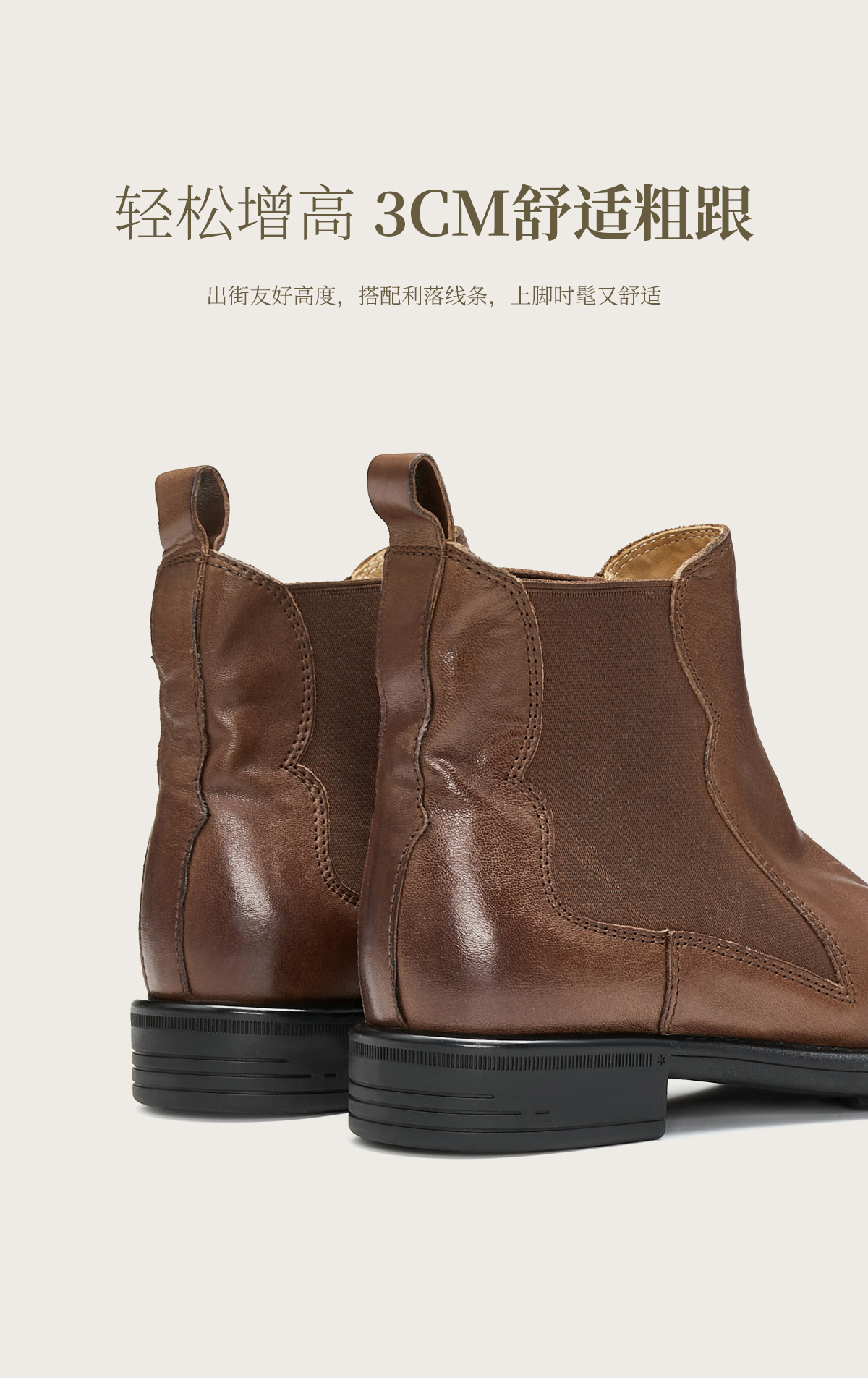 | 筒高数值:12.5CM | 靴筒筒面材质:织物牛皮革 | 里料材质:牛皮革织物面料 | 制鞋工艺:车线胶粘 | 鞋垫材质:牛皮革 |