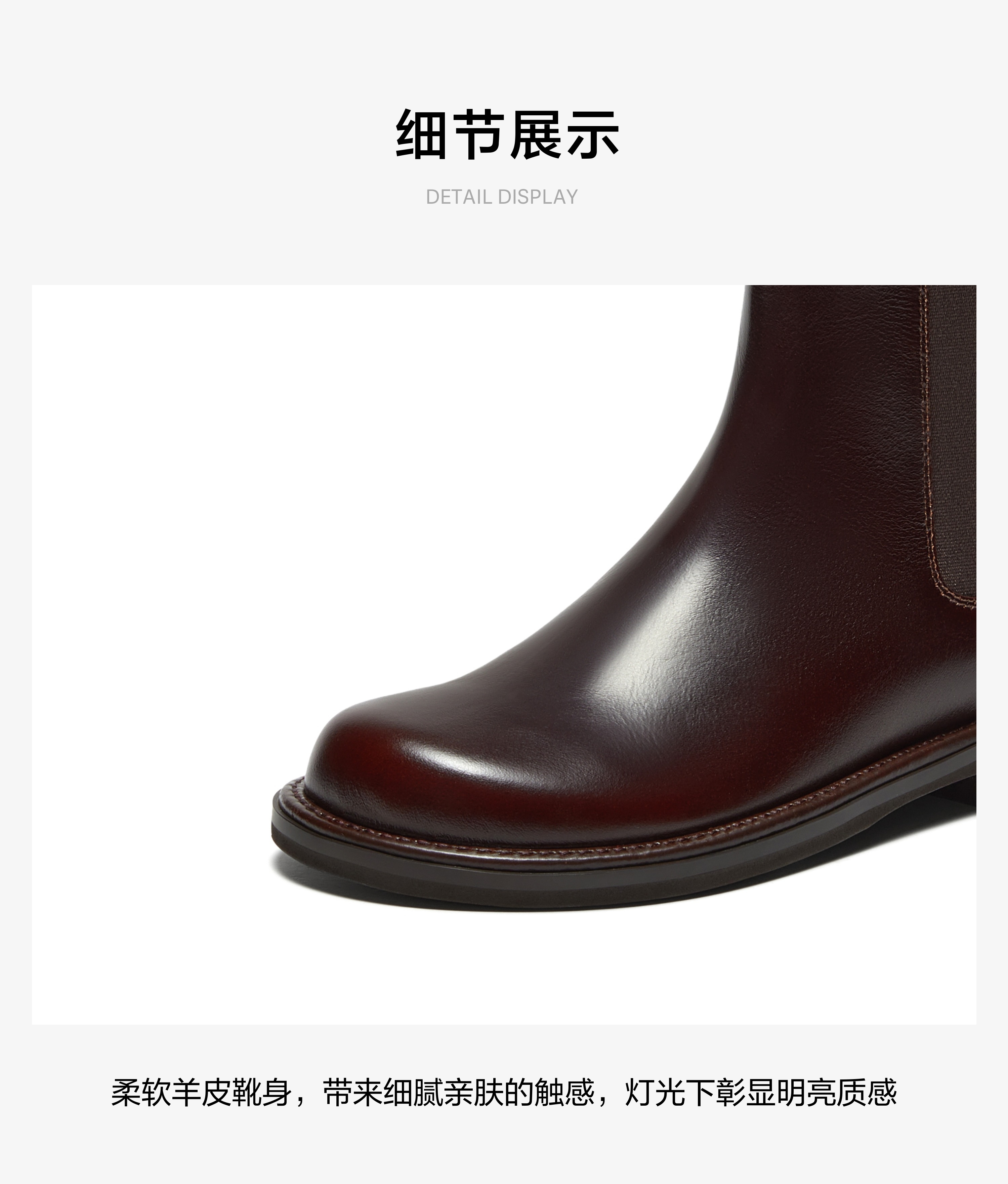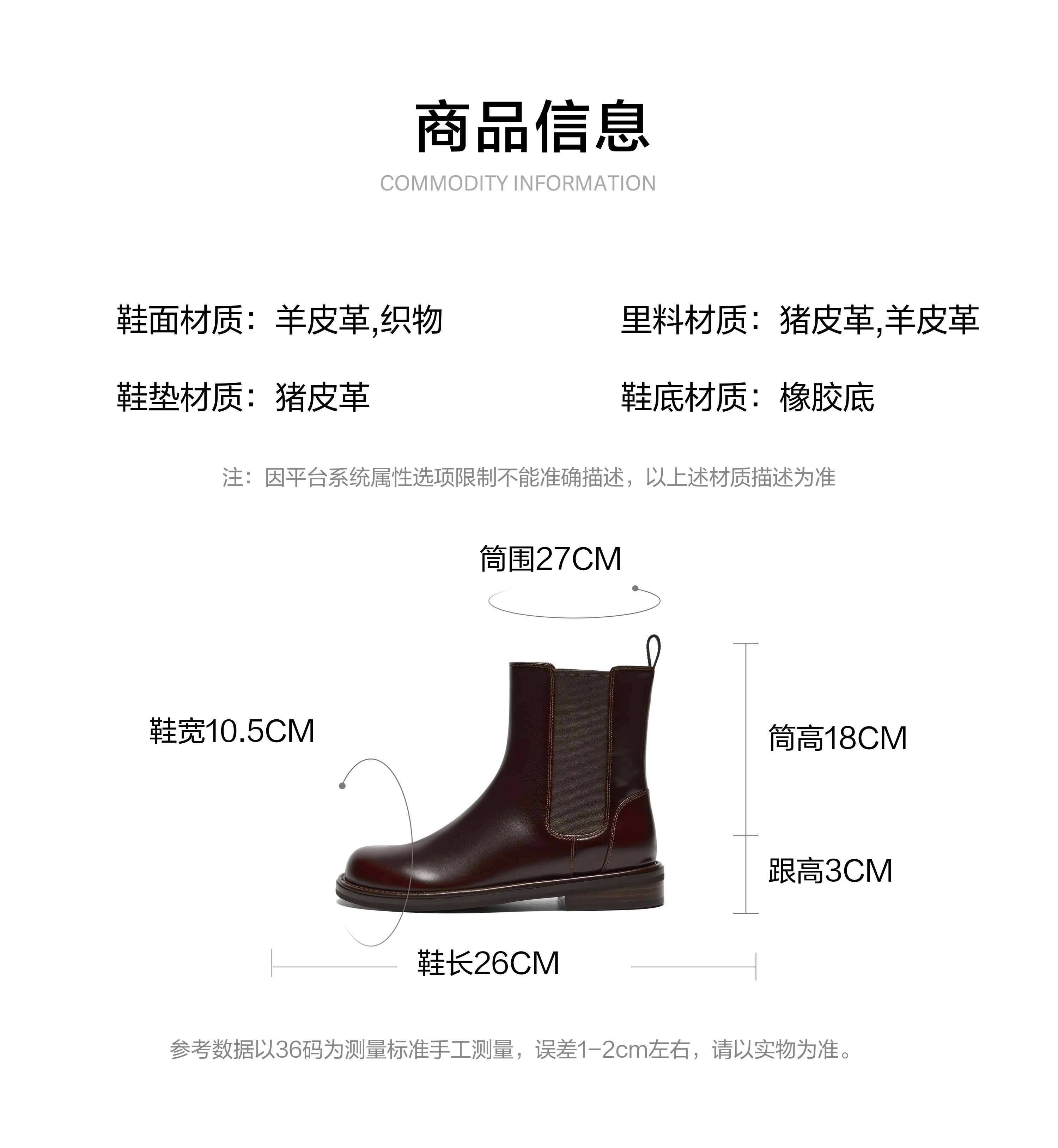 | 配跟:无 | 靴筒口围:27CM | 上市时间:2025年冬季 | 鞋类流行款式:切尔西靴 | 鞋头款式:圆头 |