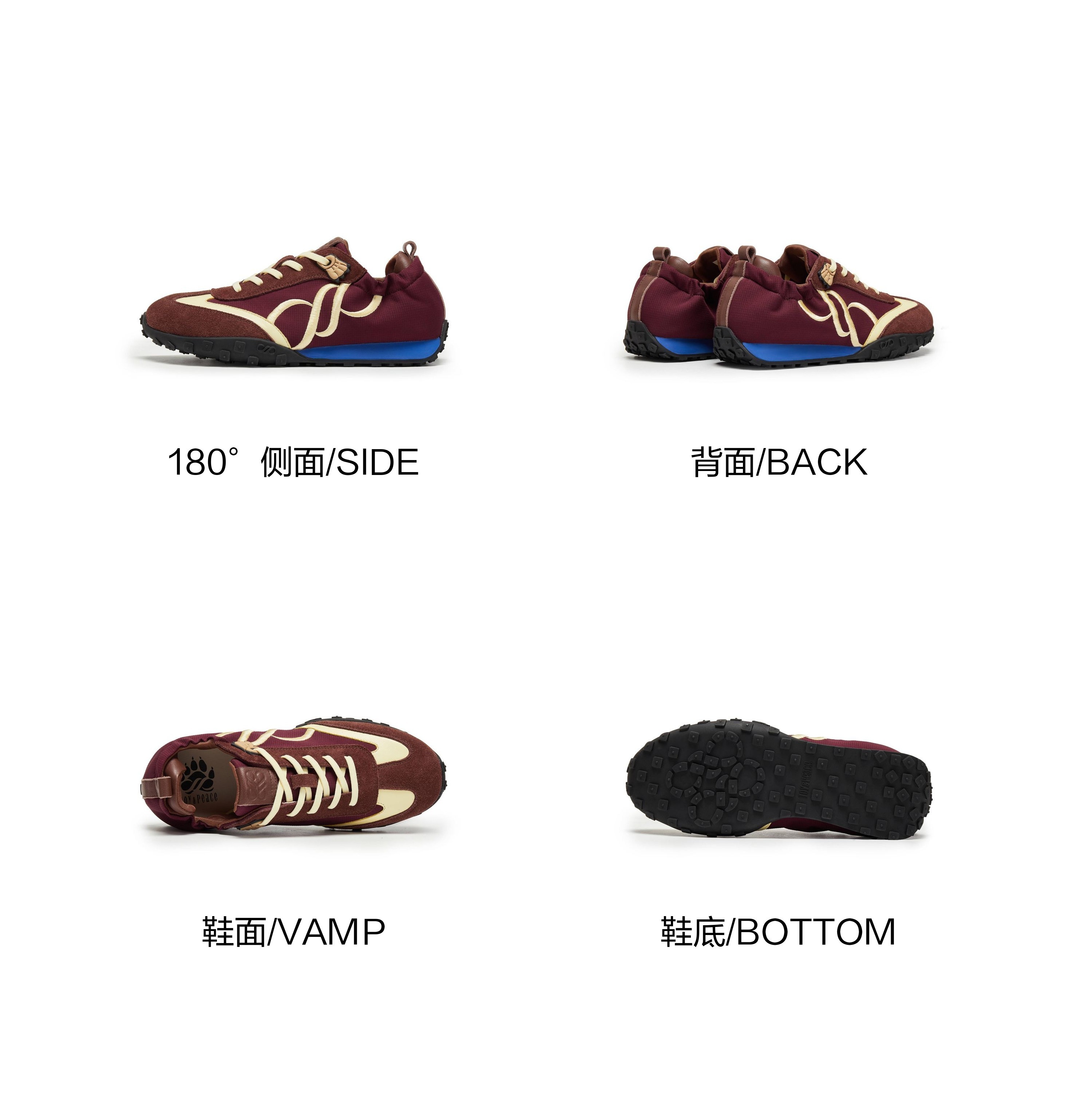 | 鞋帮:低帮 | 鞋底材质:橡胶 | 内增高:无 | 鞋面材质:牛剖层革牛皮革织物 | 闭合方式:系带 |