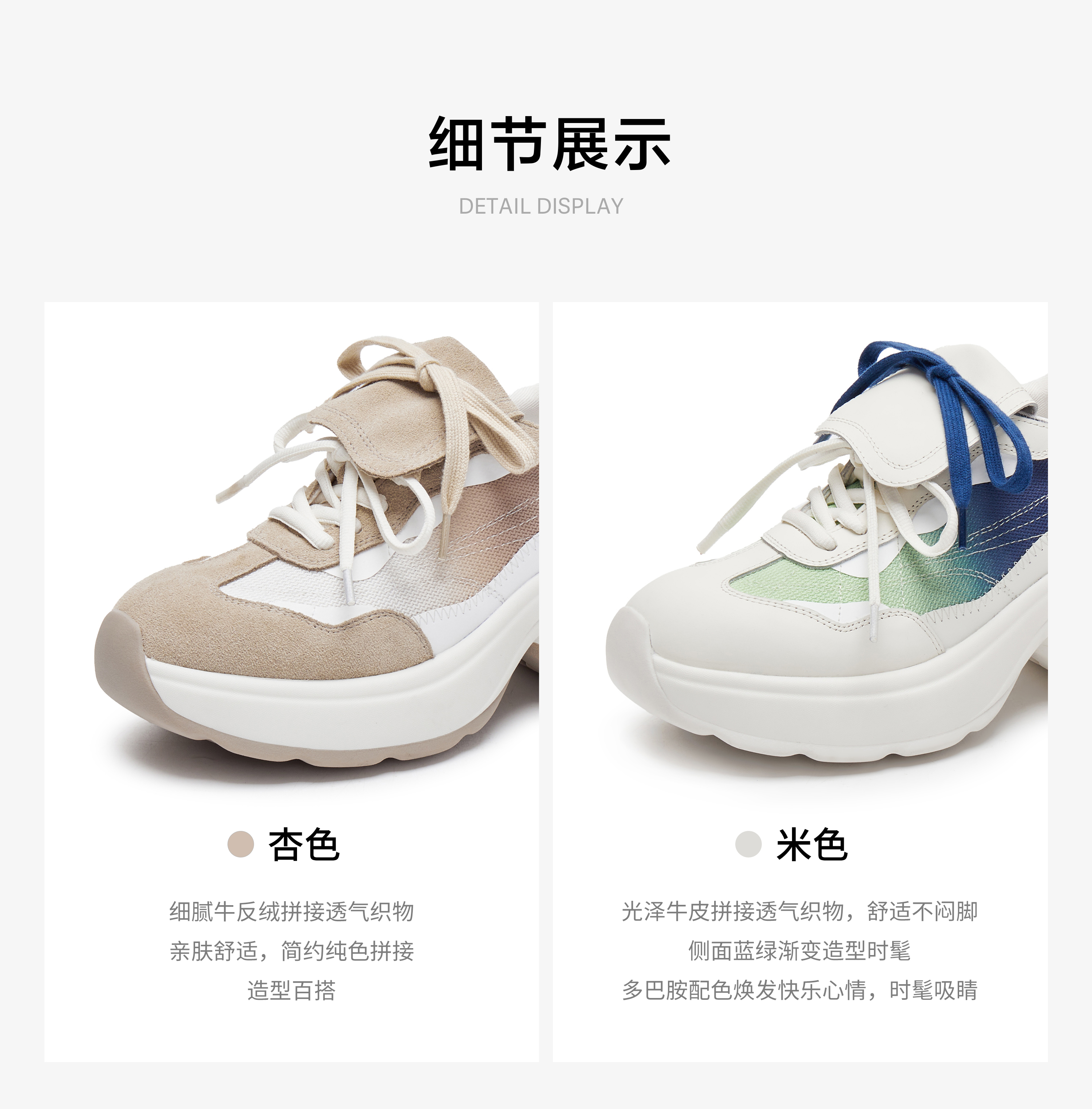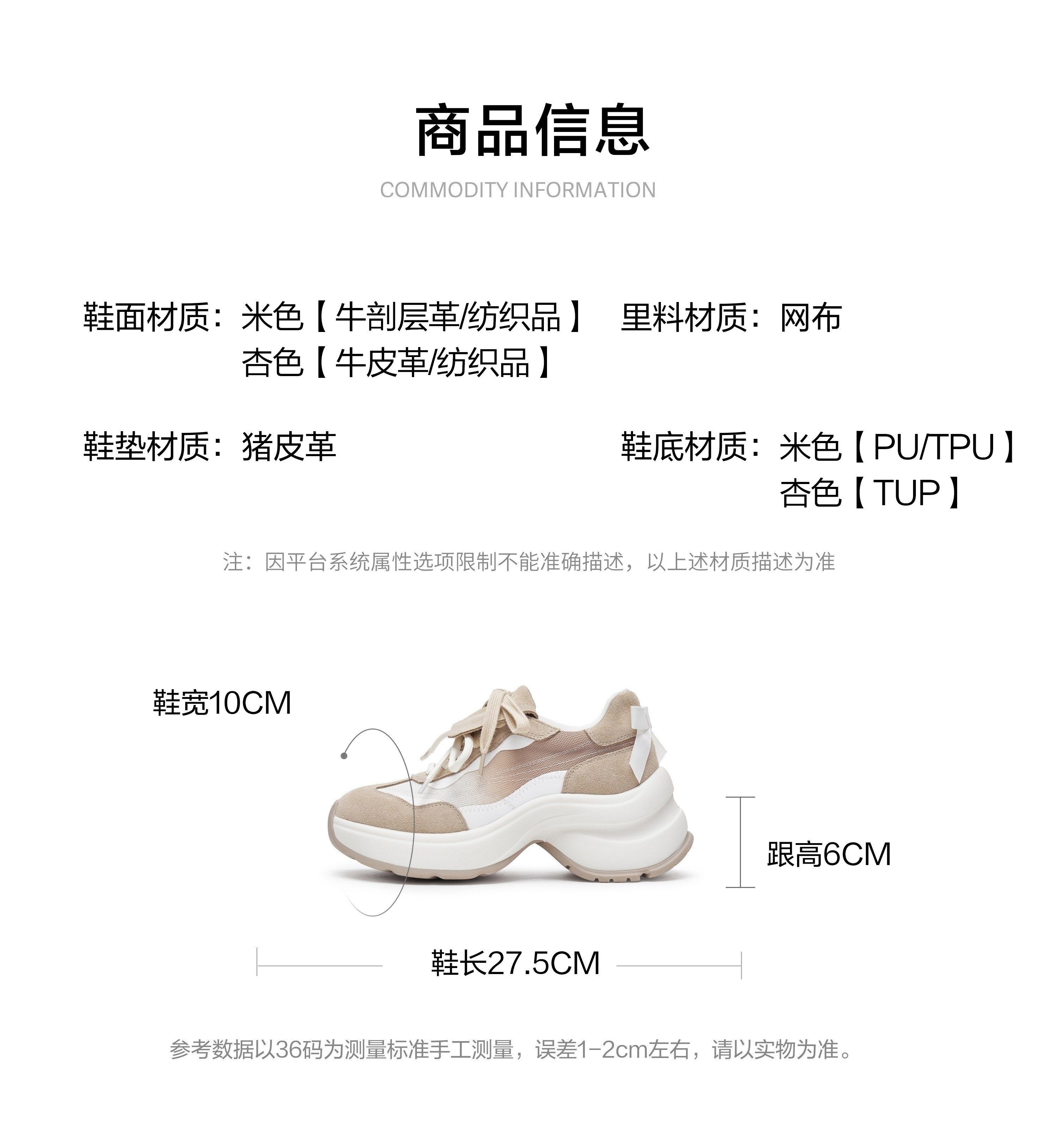 | 上市时间:2025年春季 | 鞋类流行款式:老爹鞋 | 鞋头款式:圆头 | 执行标准:舒适运动鞋Q/LR002-2023 | 跟高范围:高跟鞋(6-8CM) |