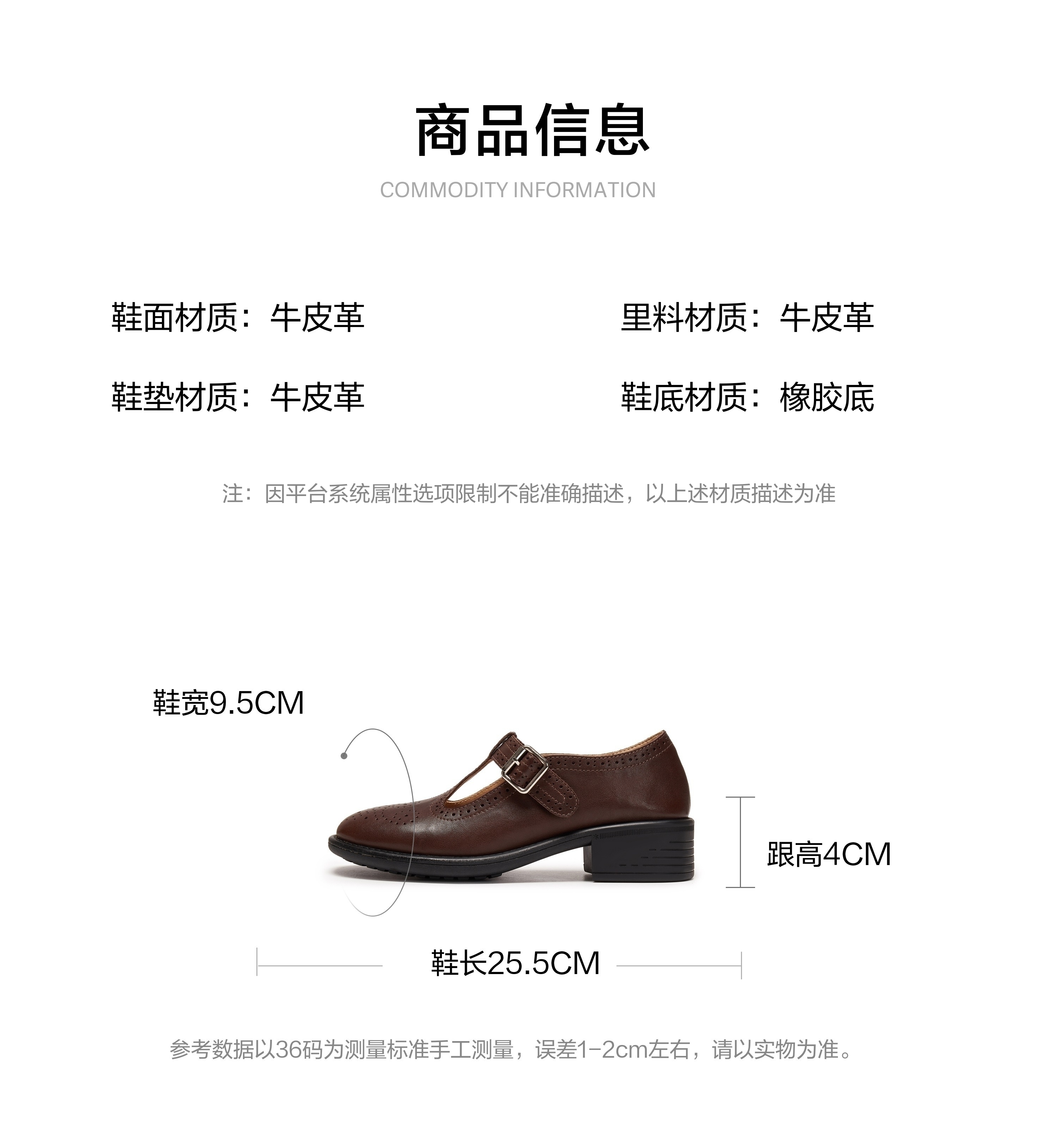 | 皮质特征:牛皮革 | 防水台高度:1CM |