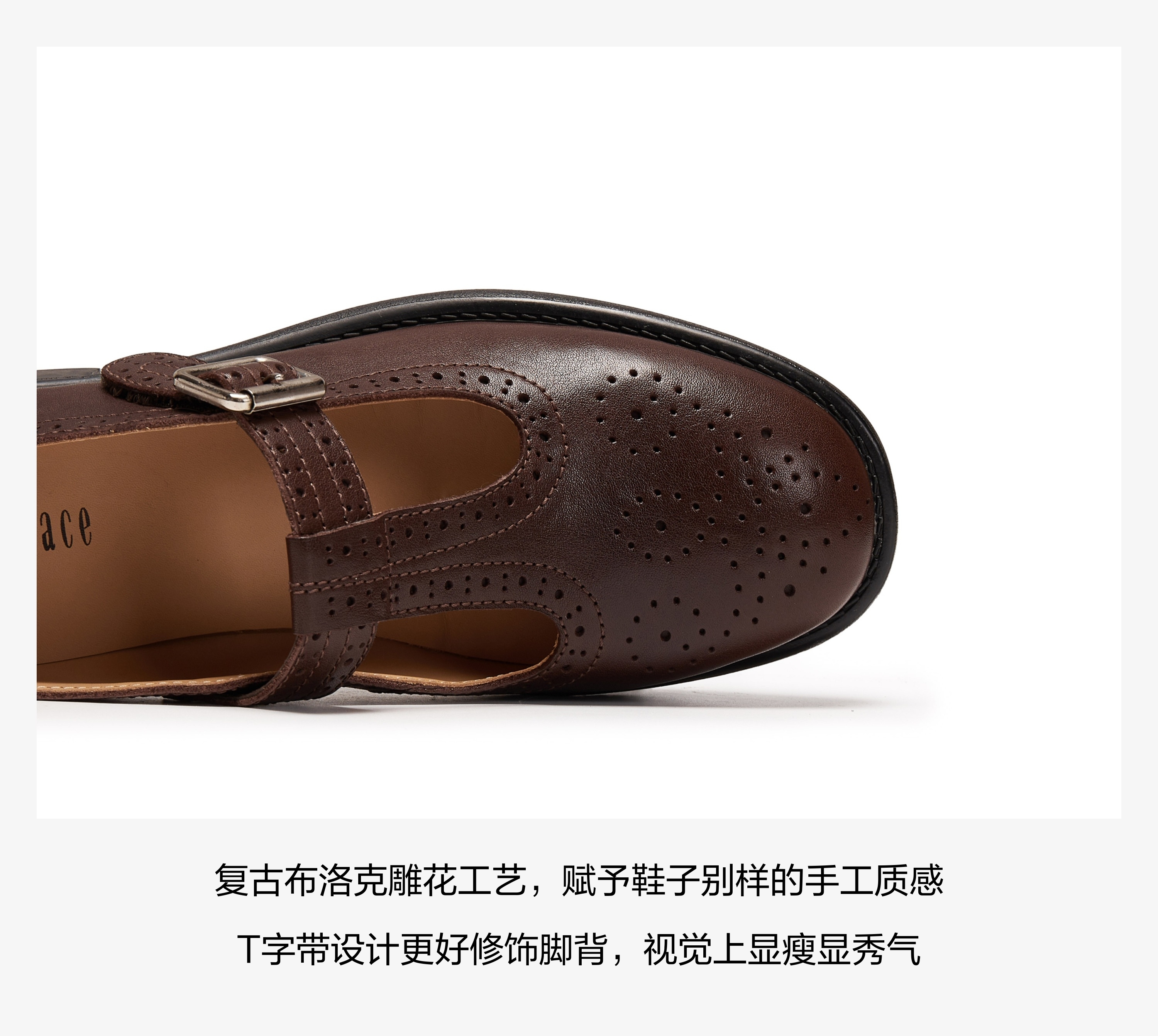 | 鞋帮:中帮 | 鞋底材质:橡胶底 | 内增高:无 | 鞋面材质:牛皮革 | 闭合方式:丁字式扣带 |