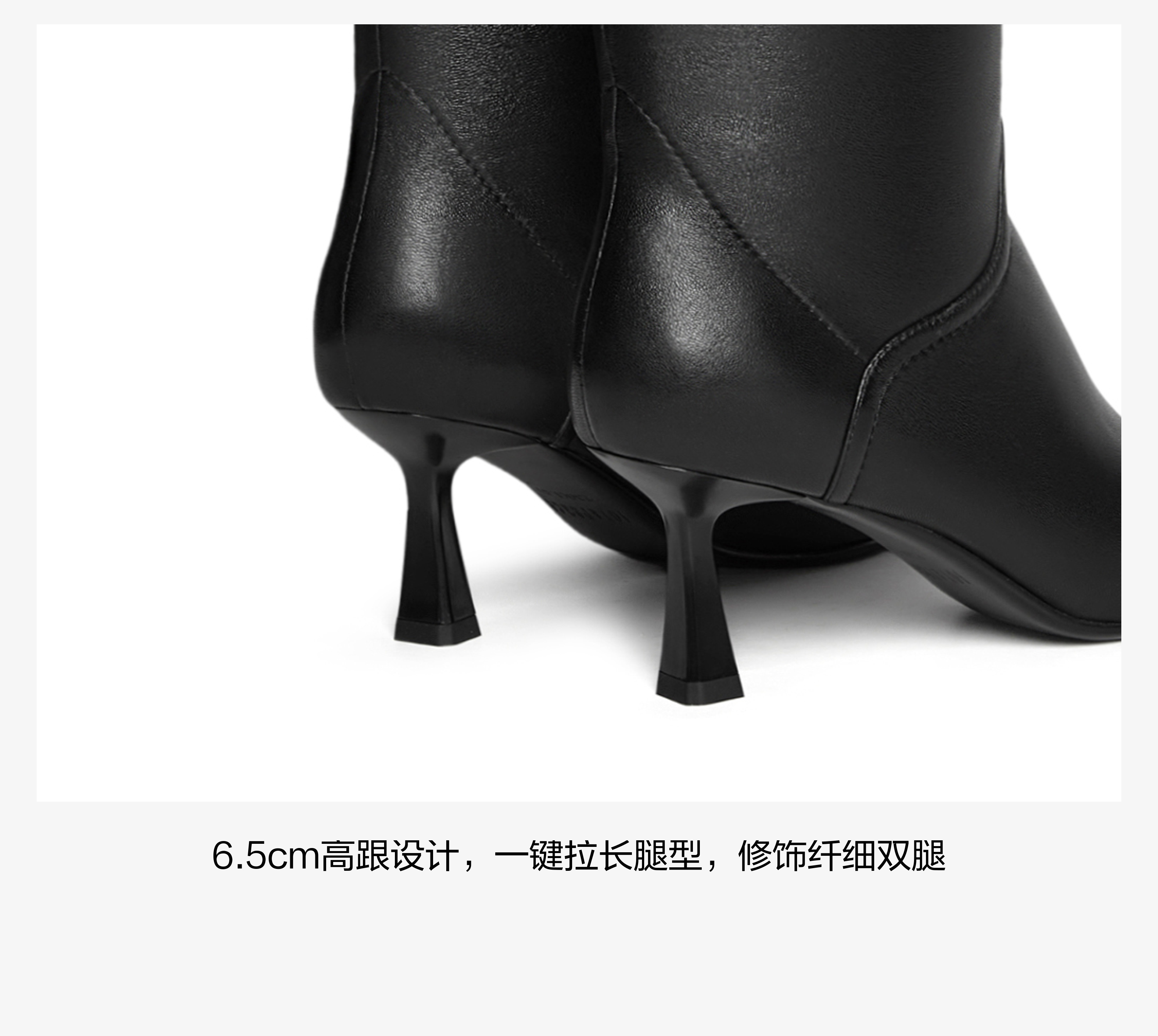 | 风格:都市 | 鞋面内里材质:超纤织物 | 色系:黑色 | 跟高数值:6.5CM | 筒高数值:51CM |