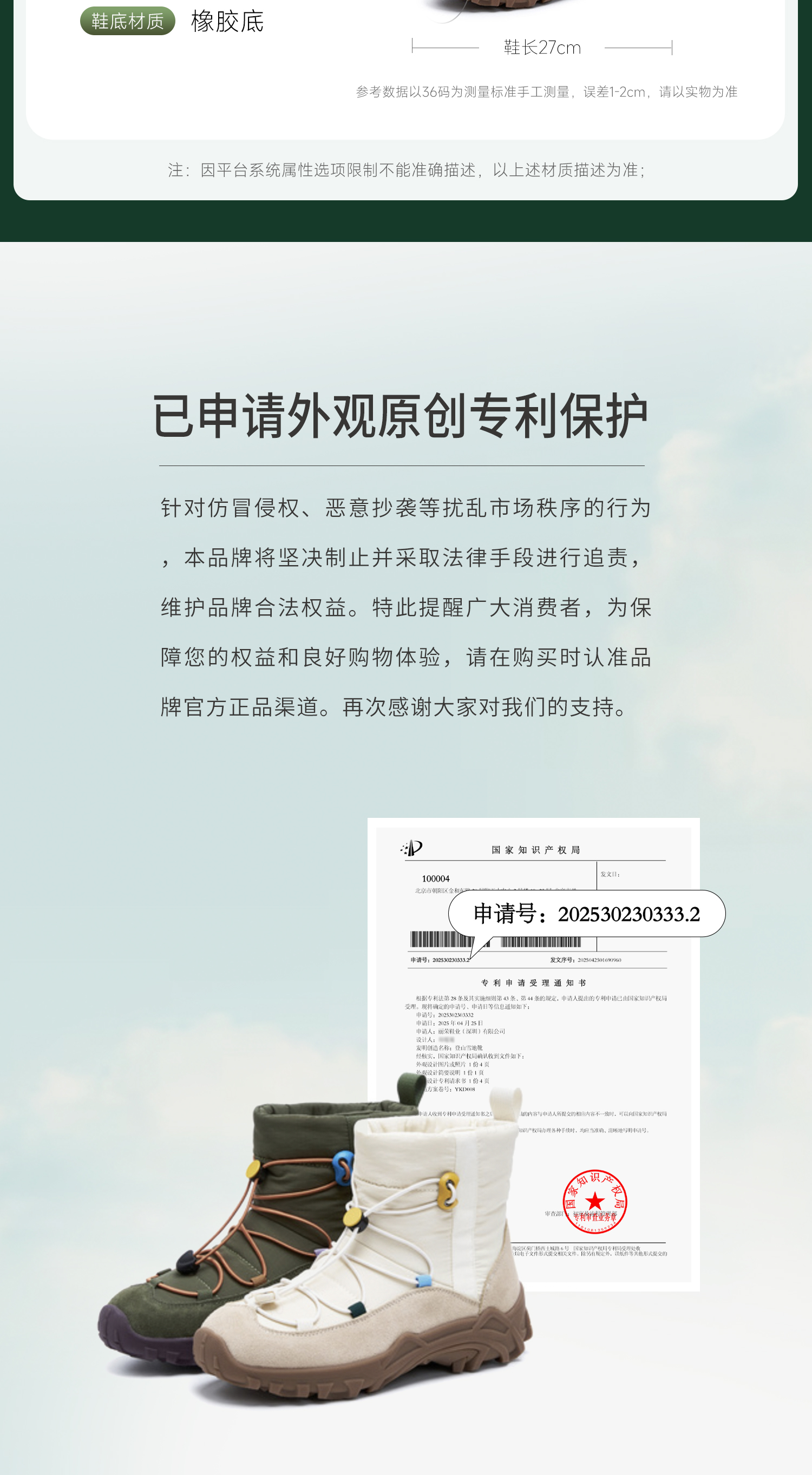 | 鞋底材质:橡胶底 | 靴筒内里材质:绒布 | 内增高:无 | 鞋面材质:牛剖层革织物 | 闭合方式:套筒 |