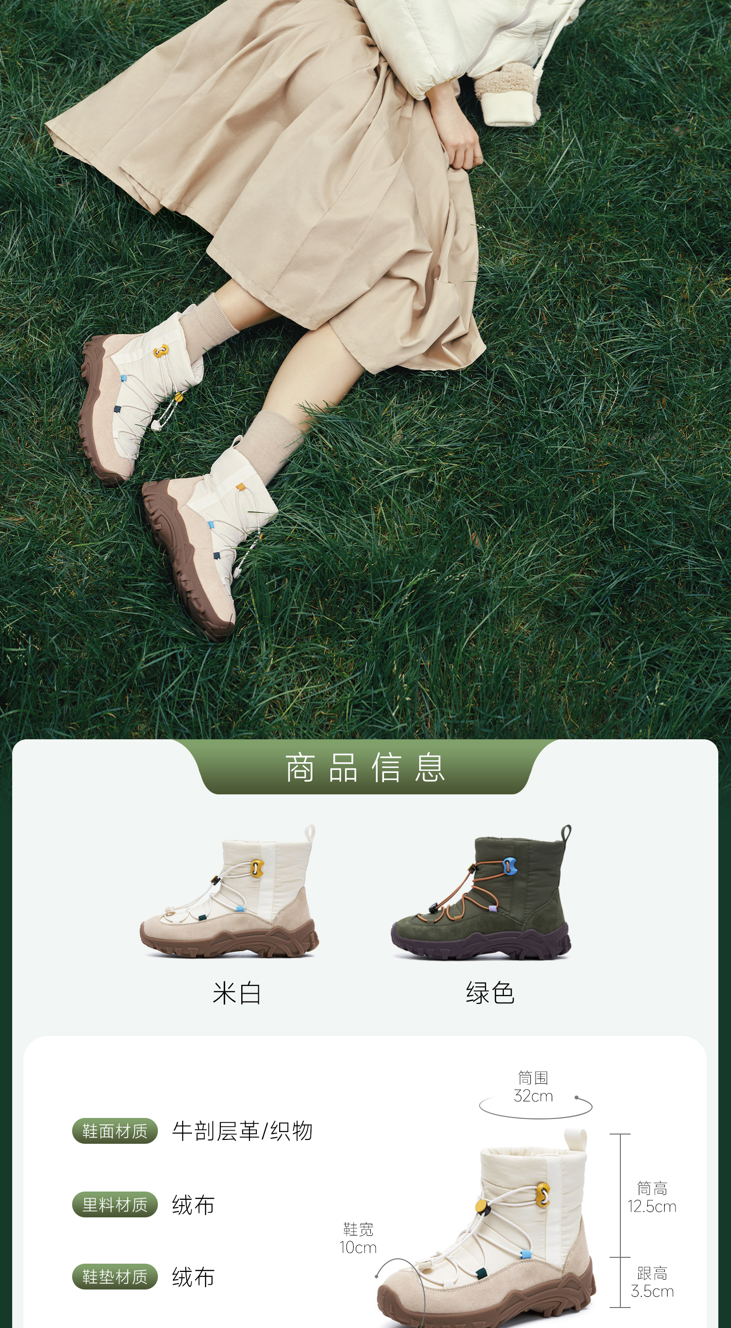 | 帮面材质:牛剖层革织物 | 配跟:无 | 靴筒口围:32CM | 上市时间:2025年冬季 | 鞋类流行款式:短靴 |