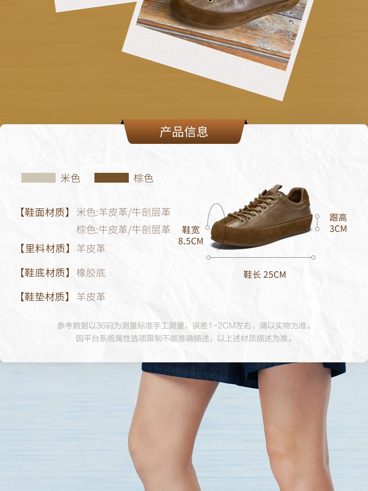 | 鞋面内里材质:羊皮革 | 色系:棕色 | 跟高数值:3CM | 适用人群:女子 | 性别:女子 |