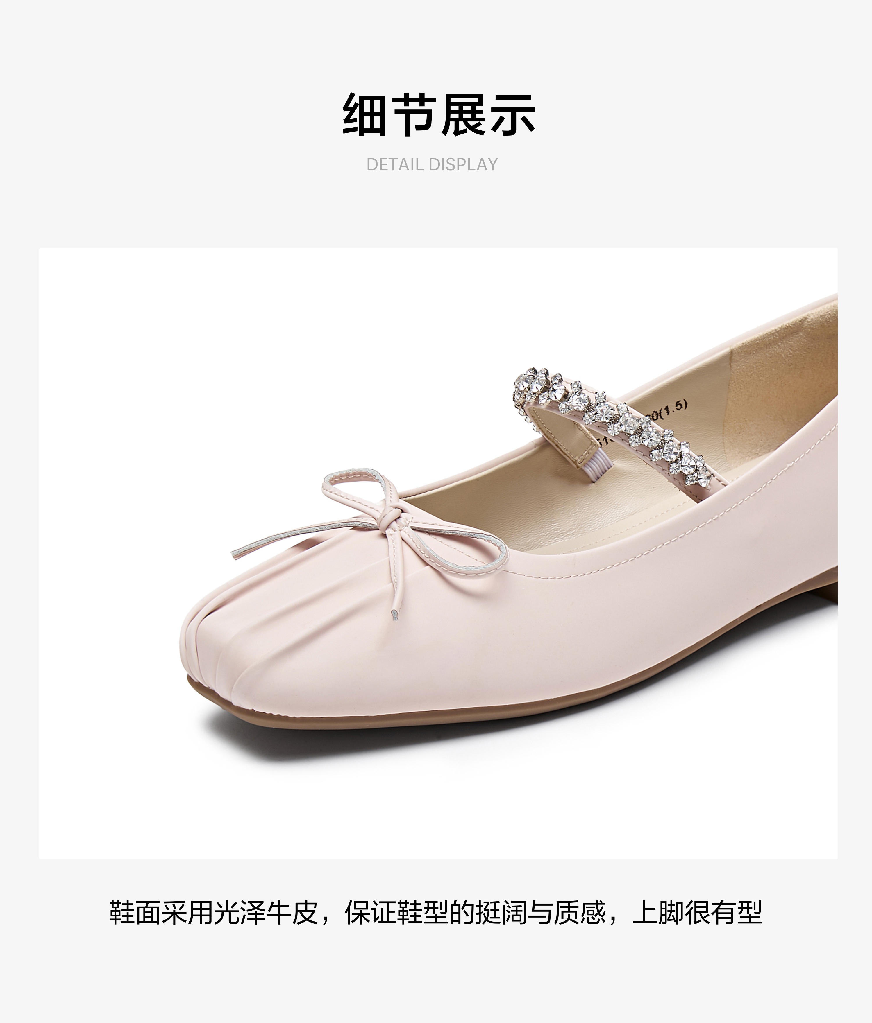 | 上市时间:2024年秋季 | 鞋类流行款式:浅口鞋 | 鞋头款式:方圆头 | 执行标准:舒适上班鞋Q/LR001-2023 | 跟高范围:低跟鞋(小于3CM) |