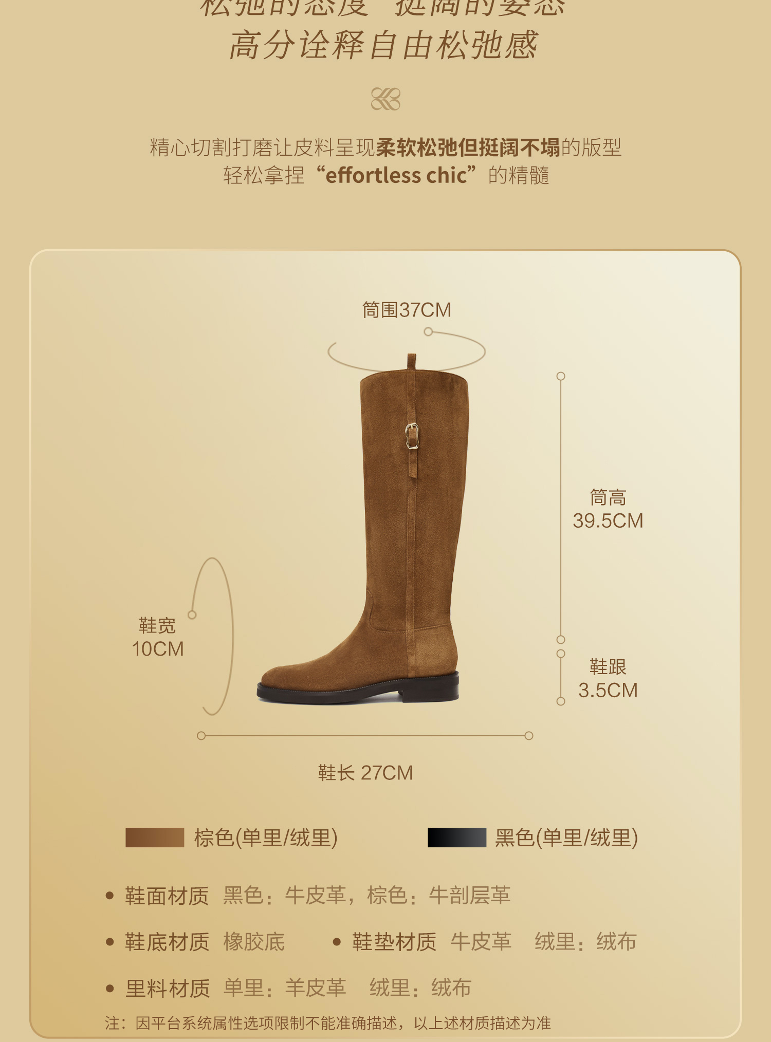 | 风格:休闲帅气 | 跟高数值:3.5CM | 色系:棕色 | 性别:女子 | 筒高数值:39.5CM |