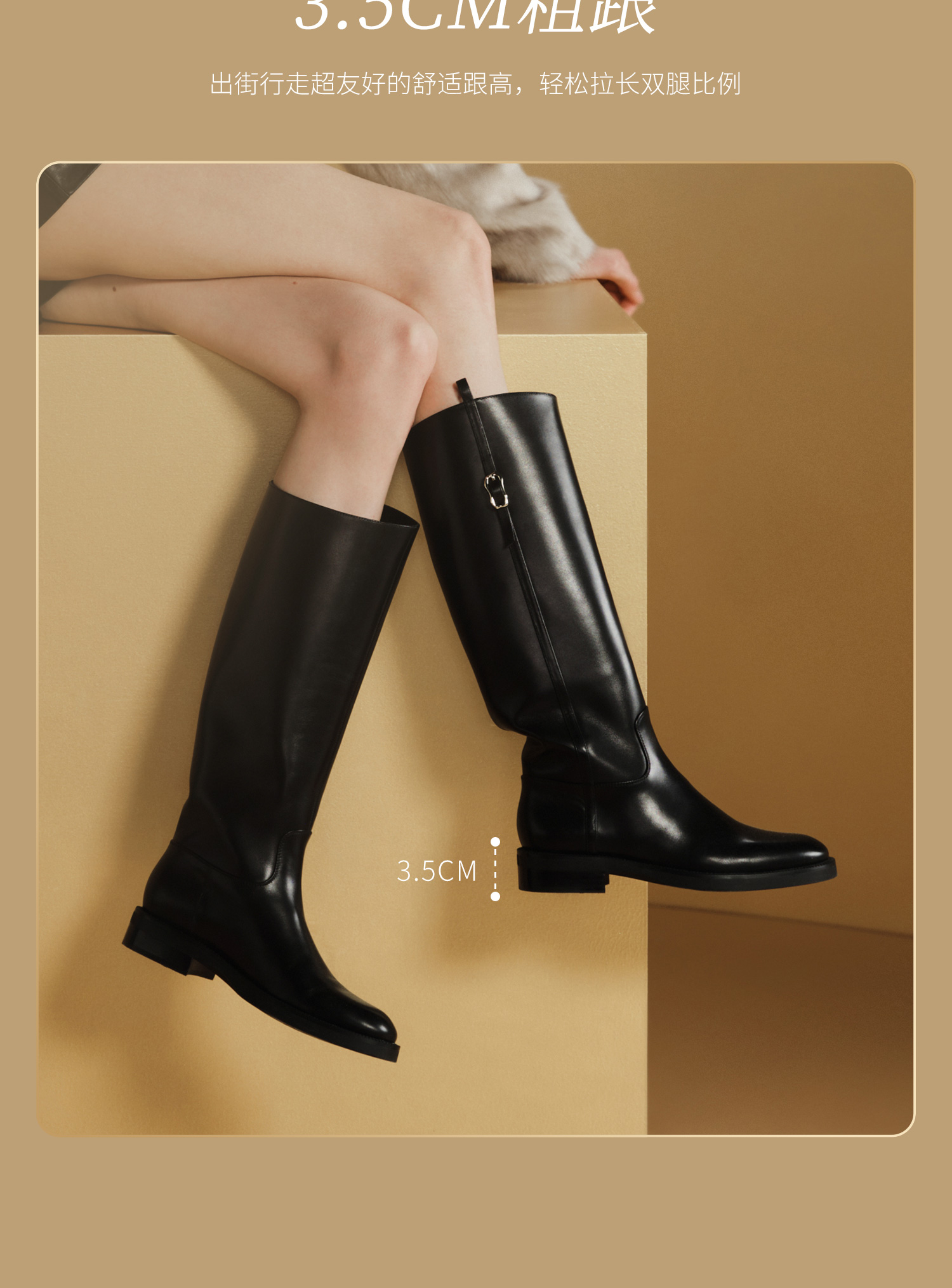 | 风格:休闲帅气 | 跟高数值:3.5CM | 色系:黑色 | 性别:女子 | 筒高数值:39.5CM |