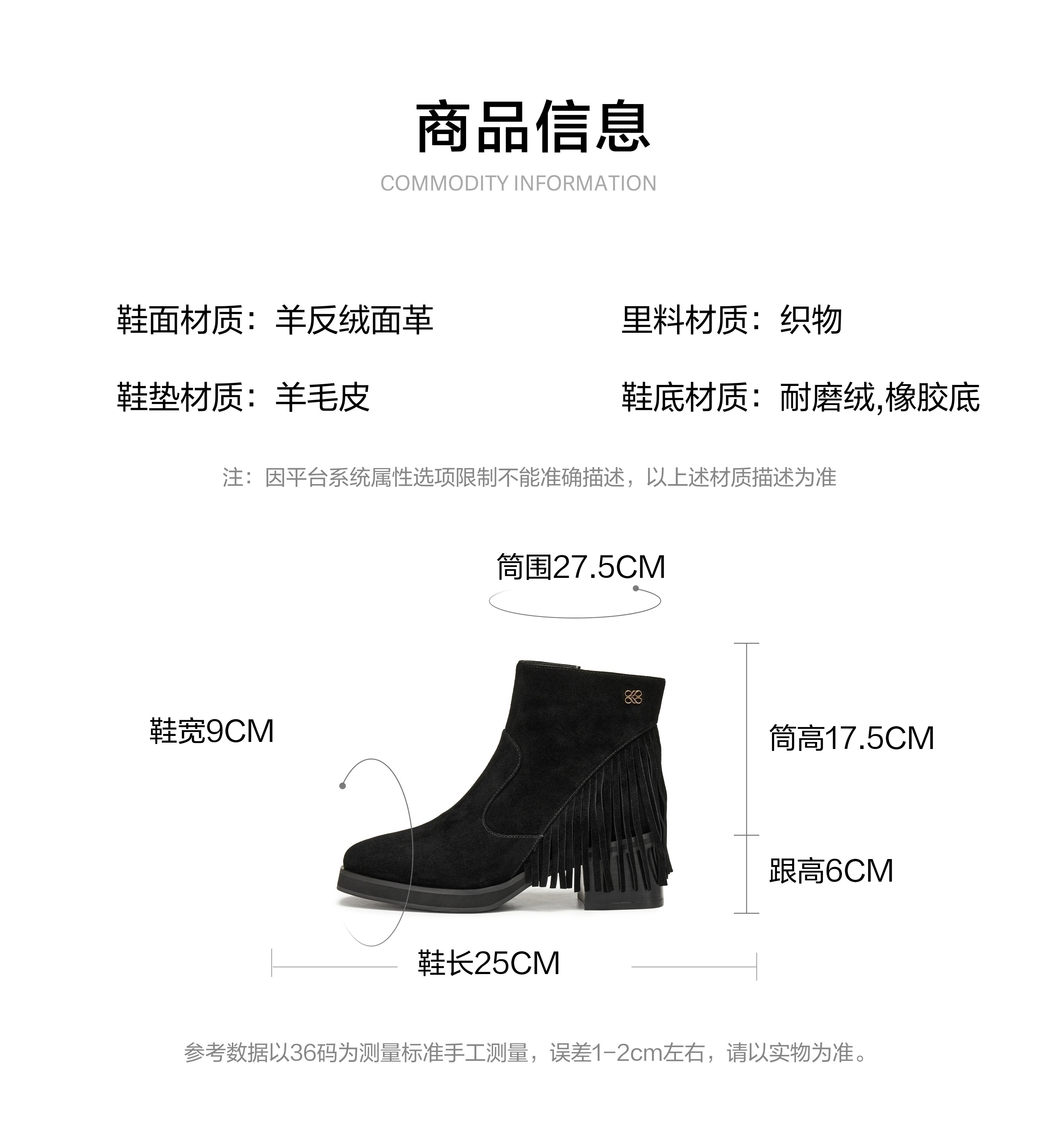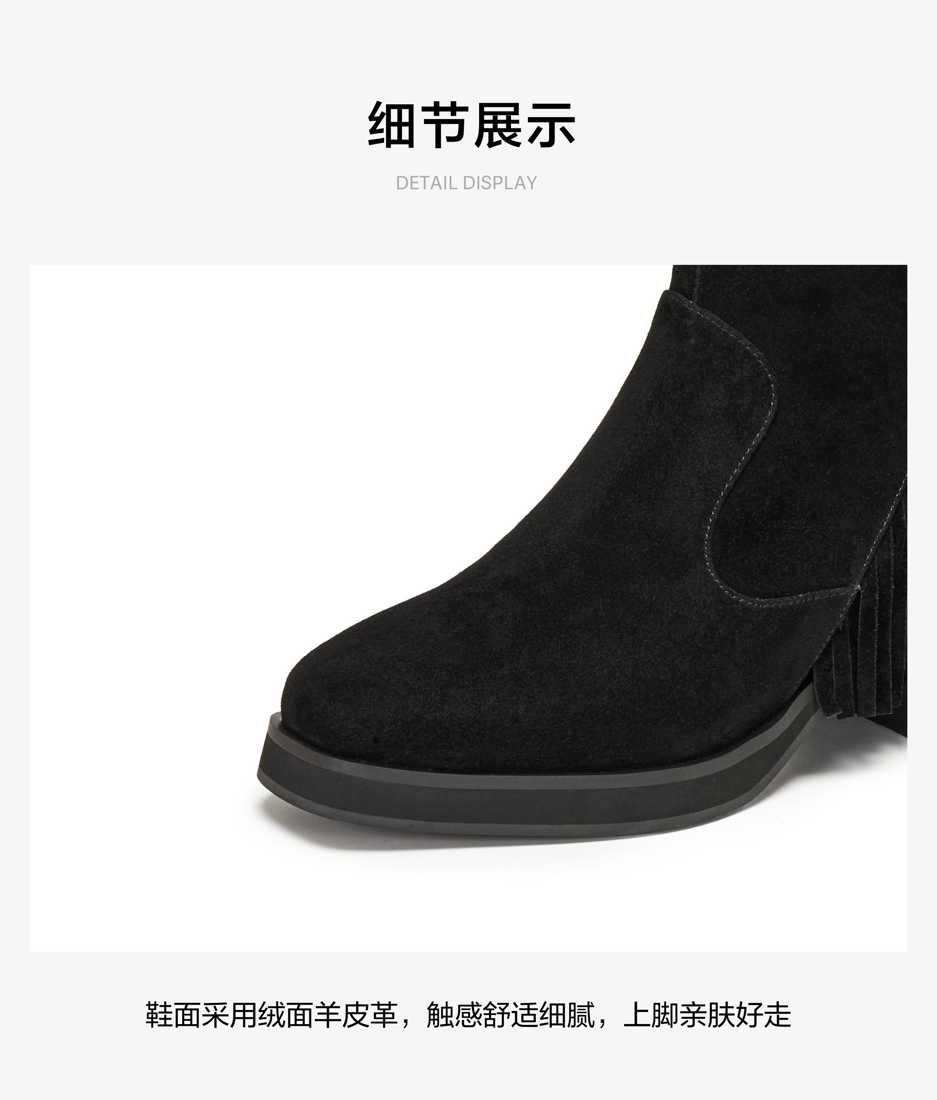 | 帮面材质:羊反绒面革 | 配跟:无 | 靴筒口围:27.5CM | 上市时间:2025年冬季 | 鞋类流行款式:时装靴 |
