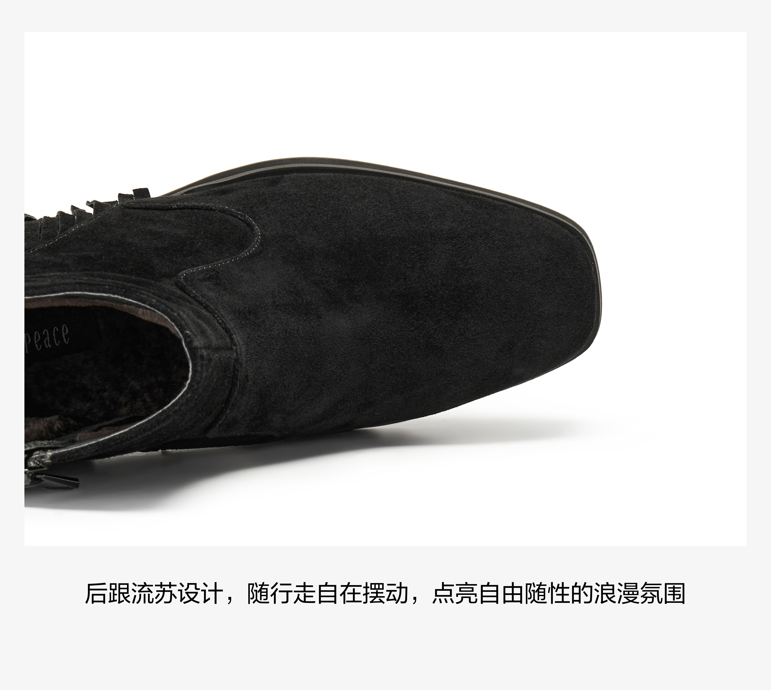 | 鞋底材质:橡胶底耐磨绒 | 靴筒内里材质:织物 | 内增高:无 | 鞋面材质:羊反绒面革 | 闭合方式:侧拉链 |