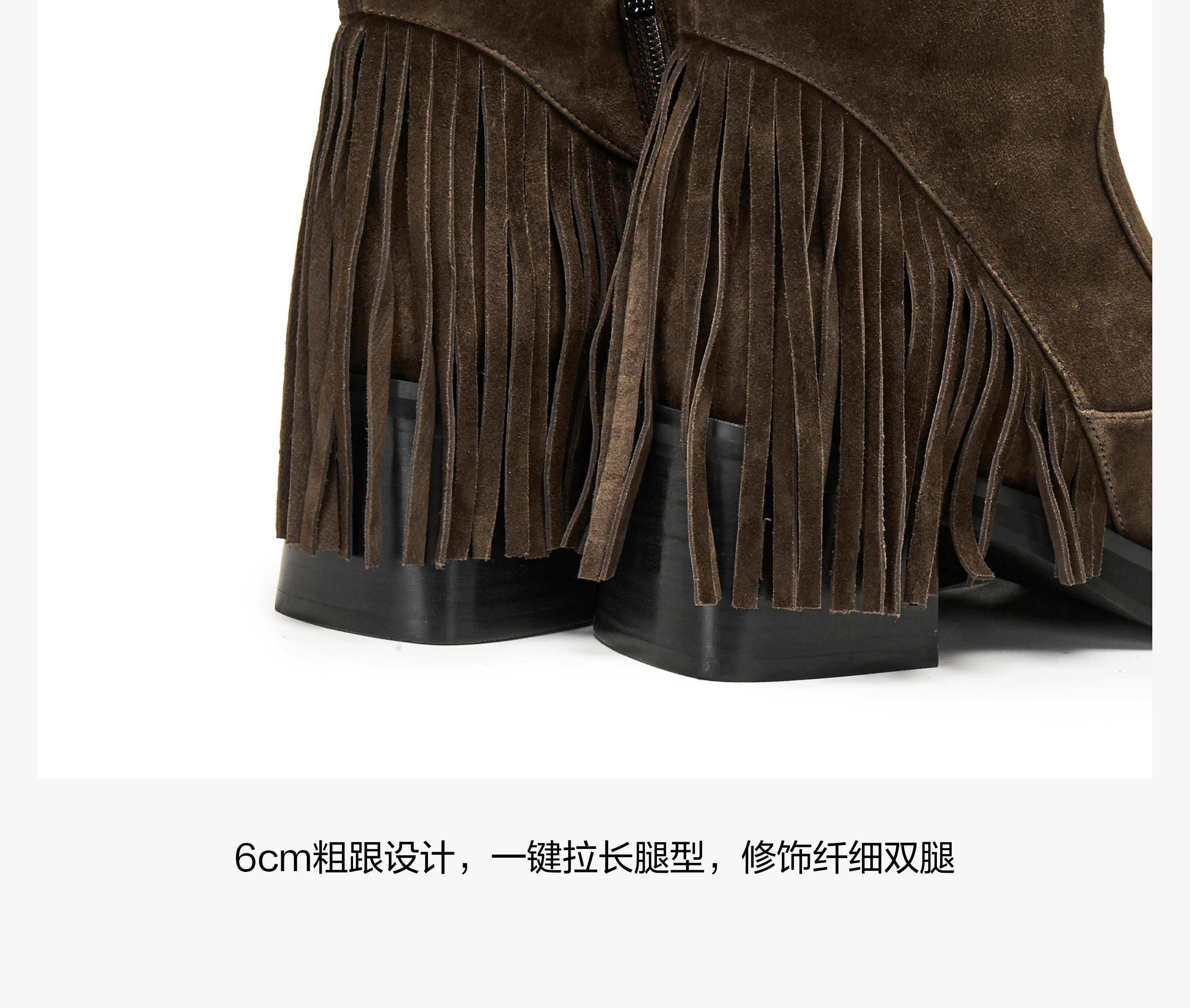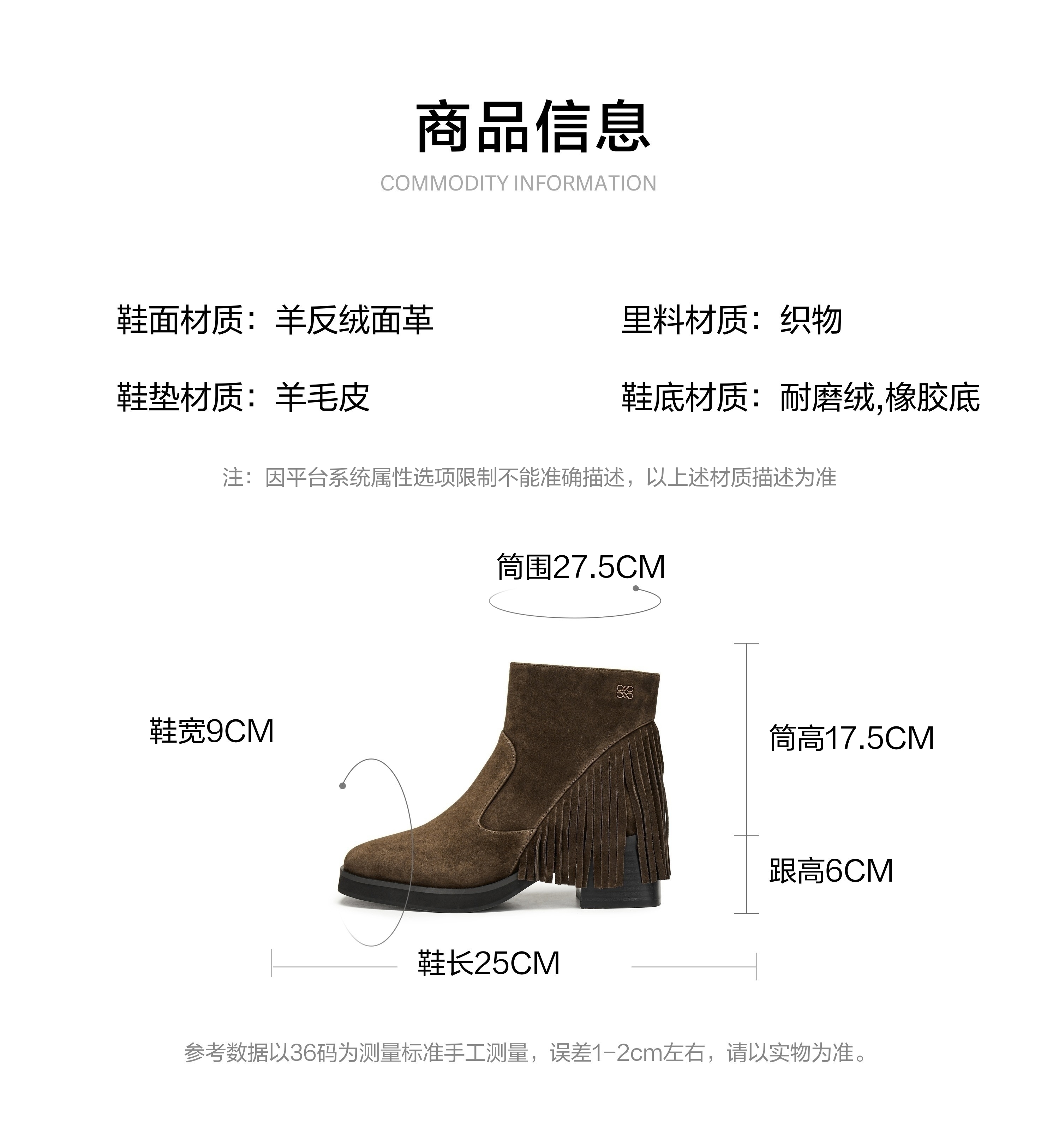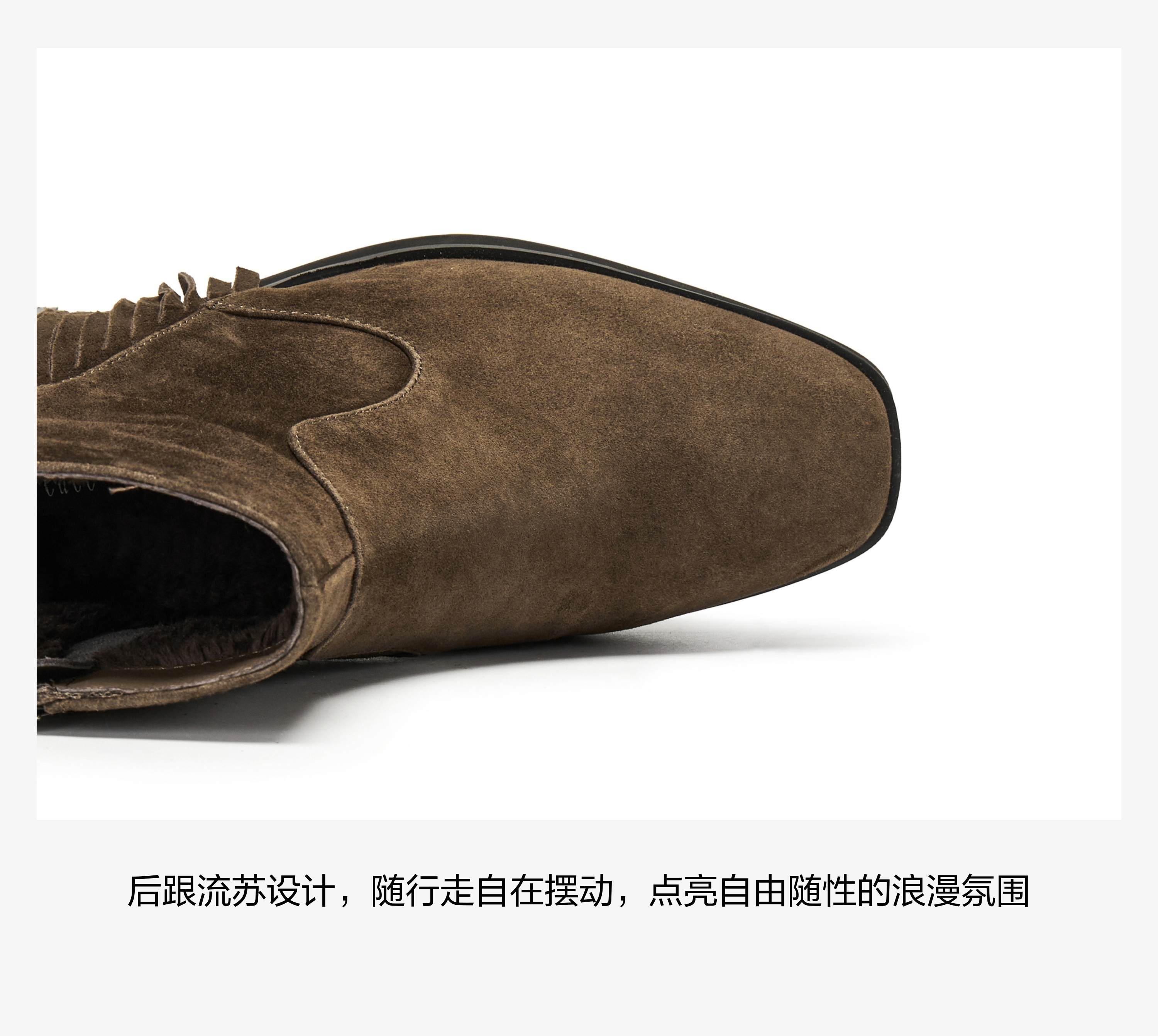 | 帮面材质:羊反绒面革 | 配跟:无 | 靴筒口围:27.5CM | 上市时间:2025年冬季 | 鞋类流行款式:时装靴 |