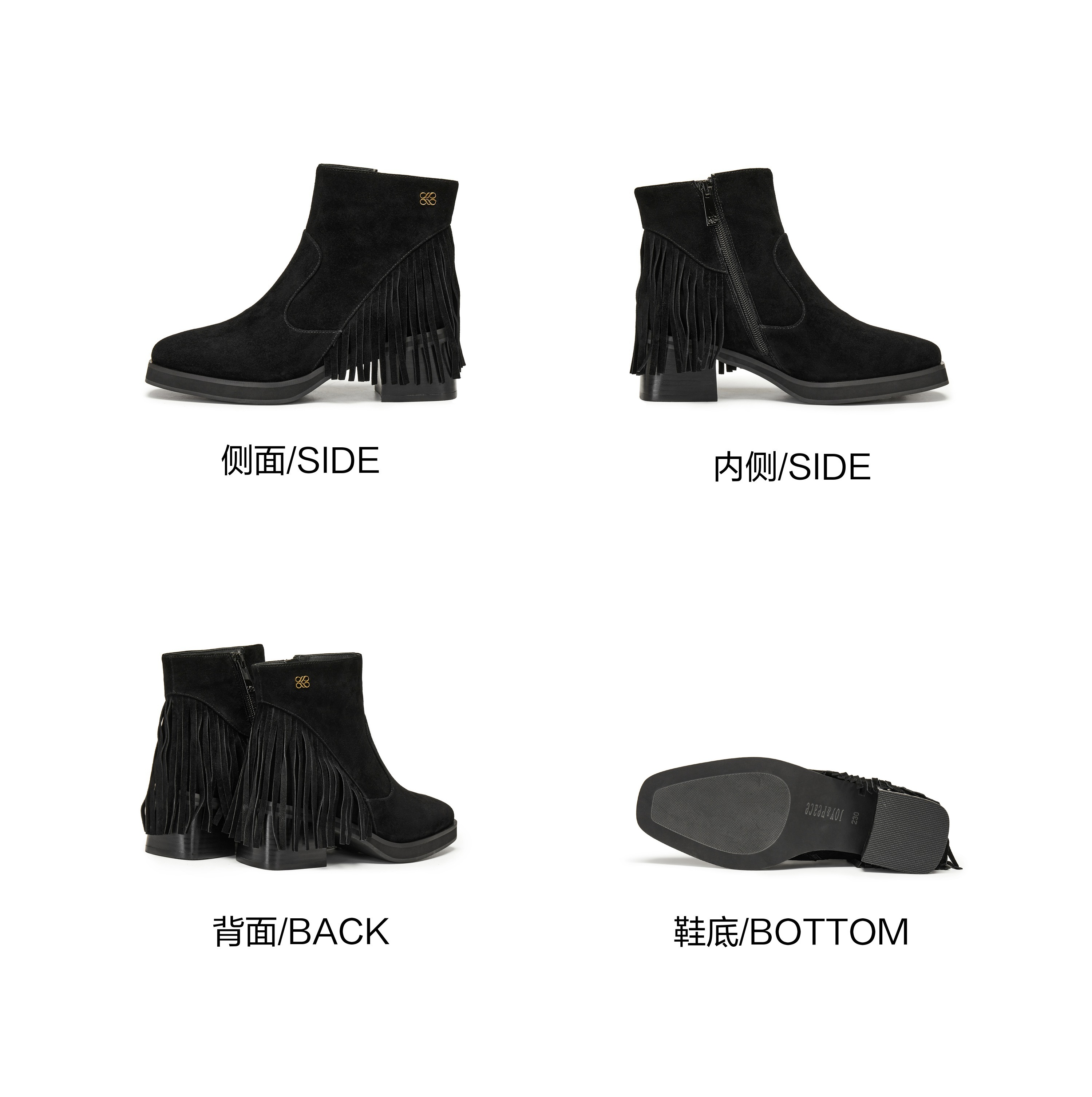 | 鞋头款式:方头 | 鞋面图案:纯色 | 鞋跟形状:粗跟 | 参考鞋长(女):25CM | 流行元素:流苏 |