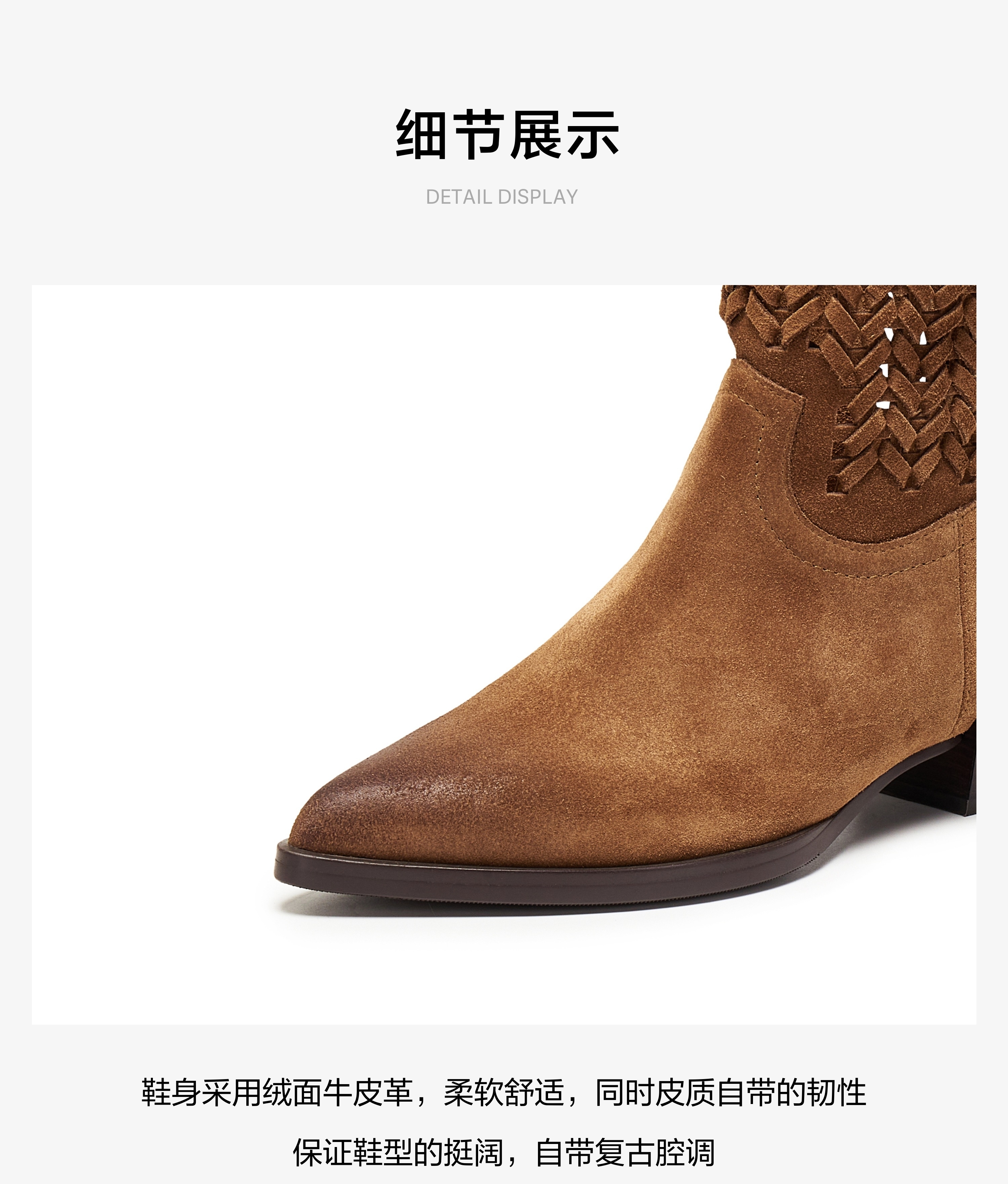 | 靴筒口围:30.5CM | 配跟:无 | 上市时间:2025年冬季 | 鞋类流行款式:西部靴 | 鞋头款式:圆头 |