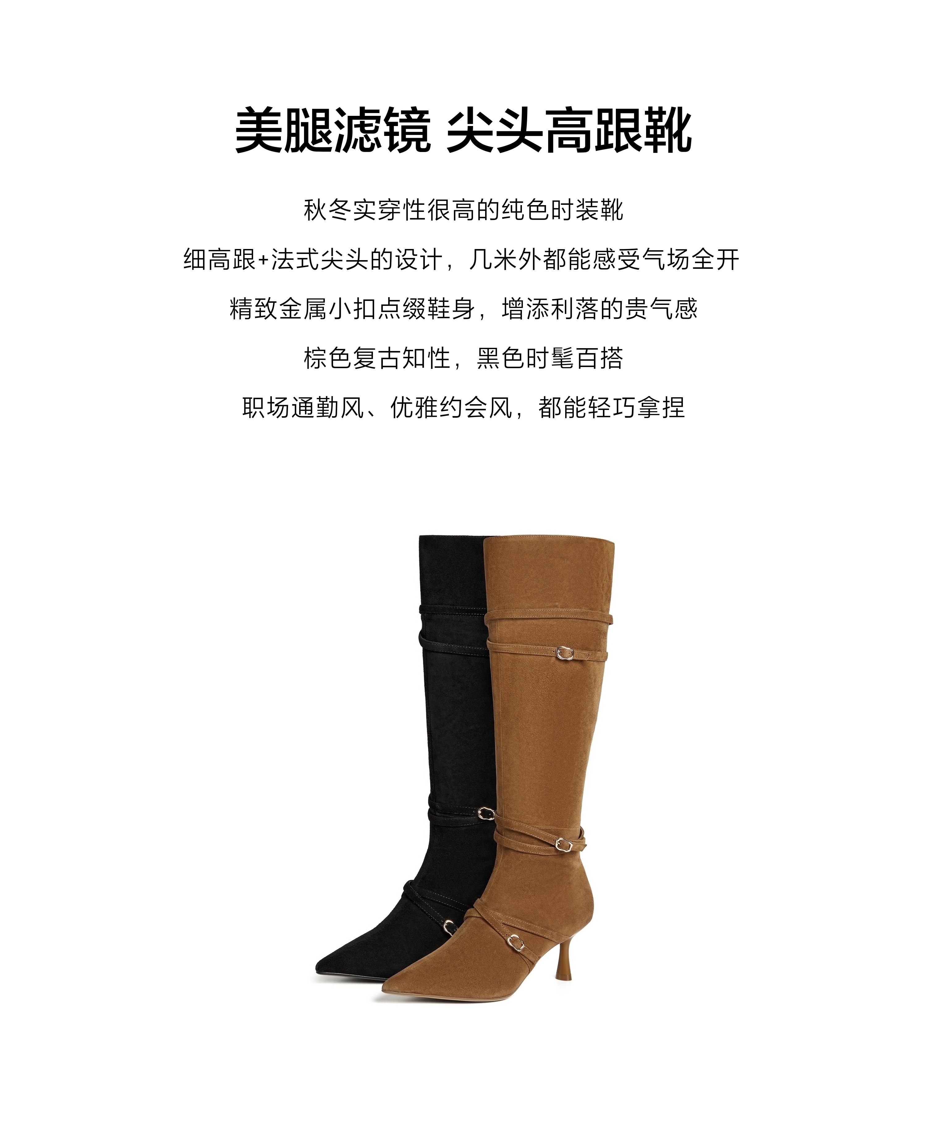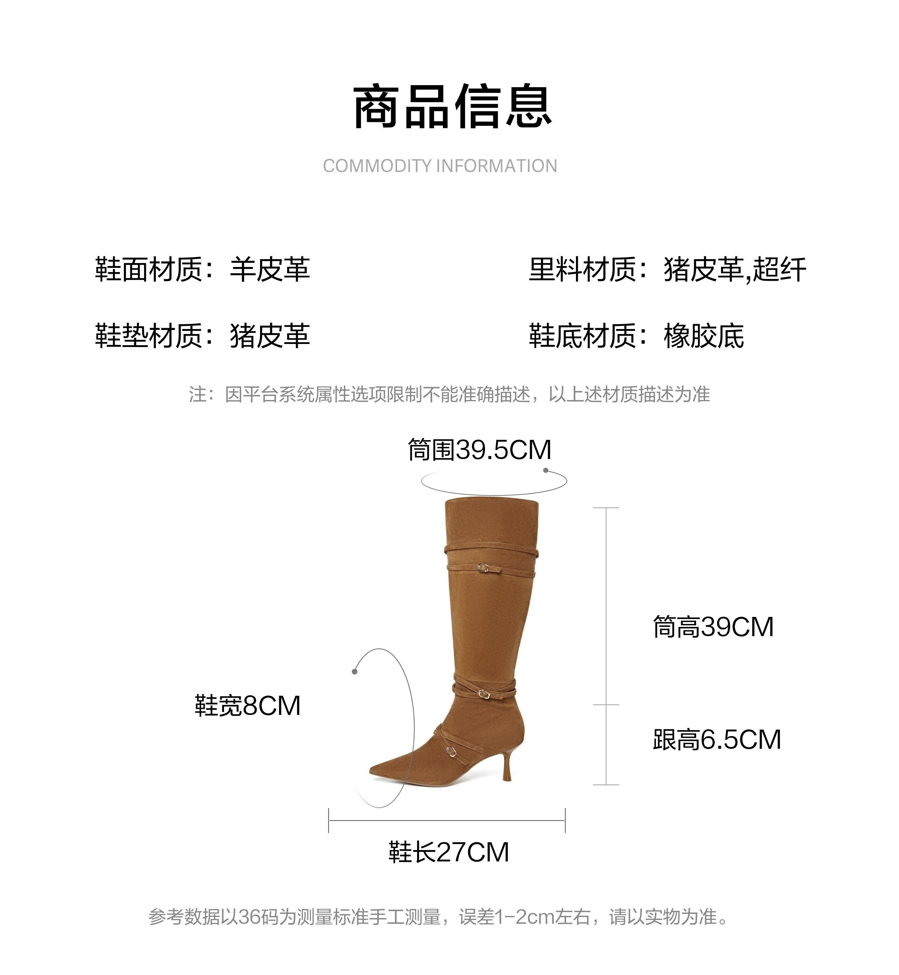 | 配跟:无 | 靴筒口围:39.5CM | 上市时间:2025年冬季 | 鞋类流行款式:时装靴 | 鞋头款式:尖头 |