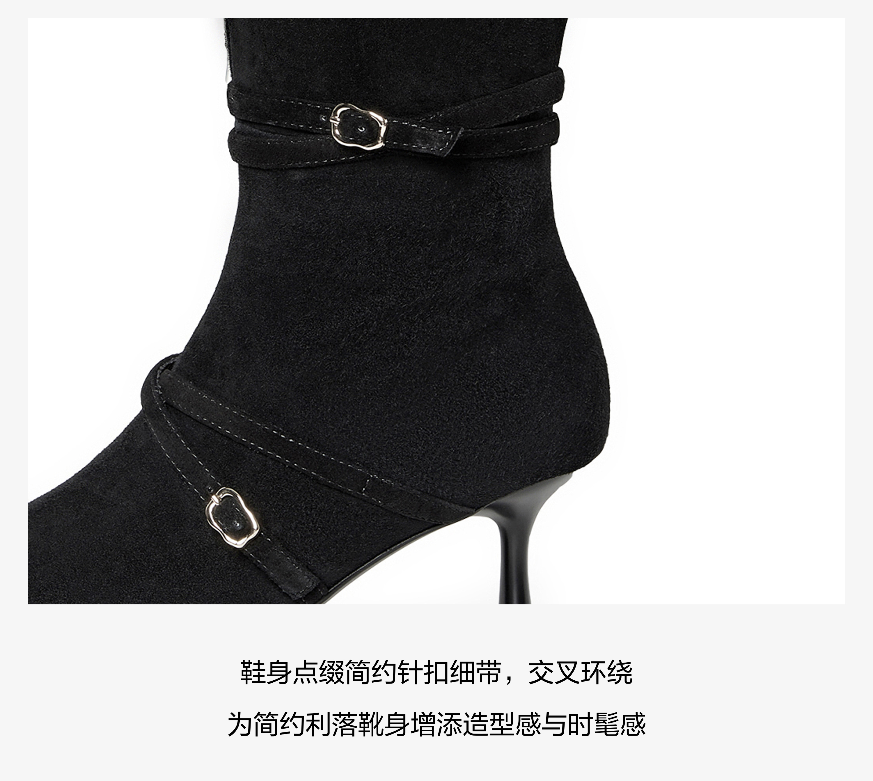 | 配跟:无 | 靴筒口围:39.5CM | 上市时间:2025年冬季 | 鞋类流行款式:时装靴 | 鞋头款式:尖头 |