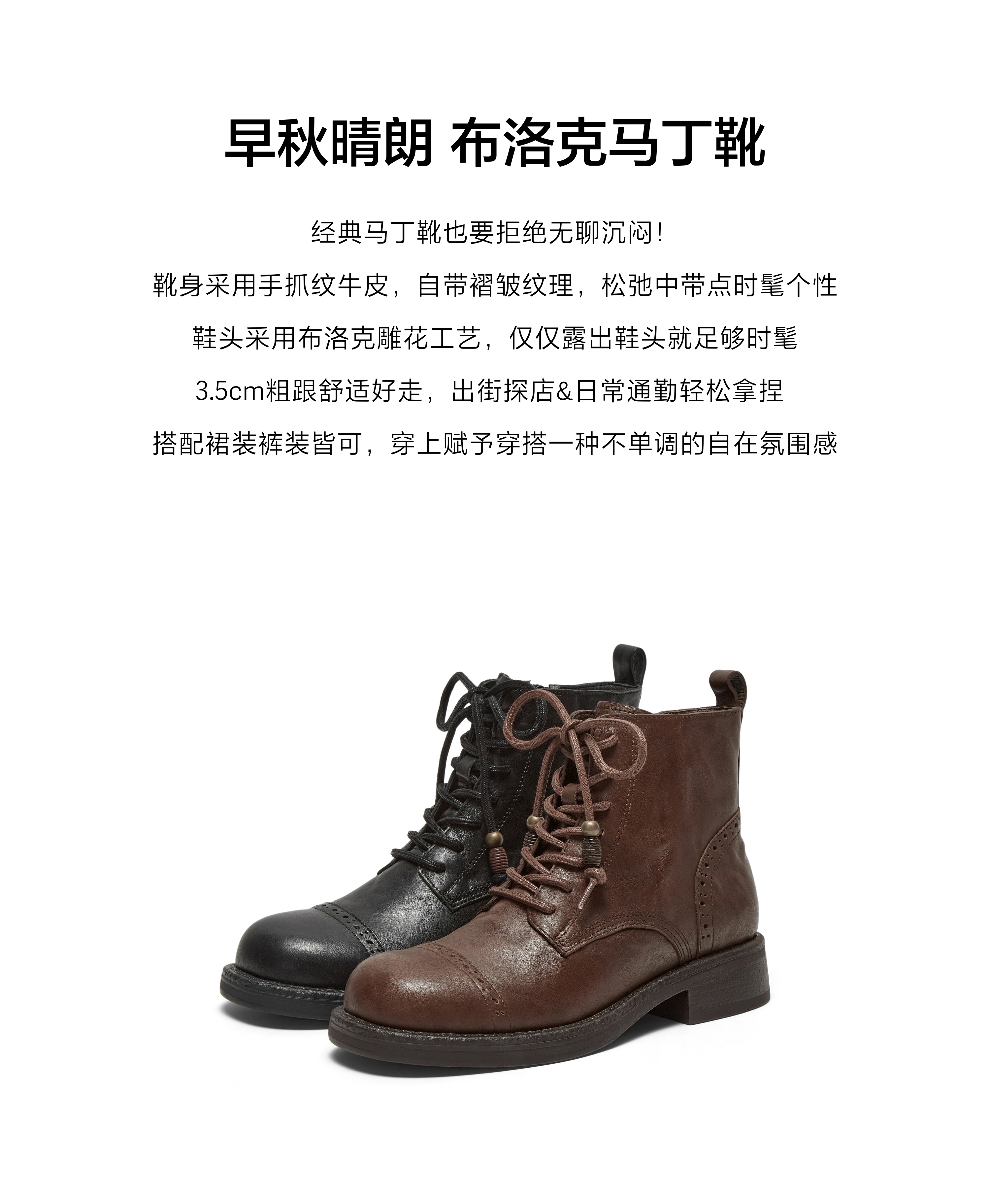 | 参考鞋宽(女):10CM | 风格:工装 | 鞋面内里材质:猪皮革 | 色系:黑色 | 跟高数值:3.5CM |