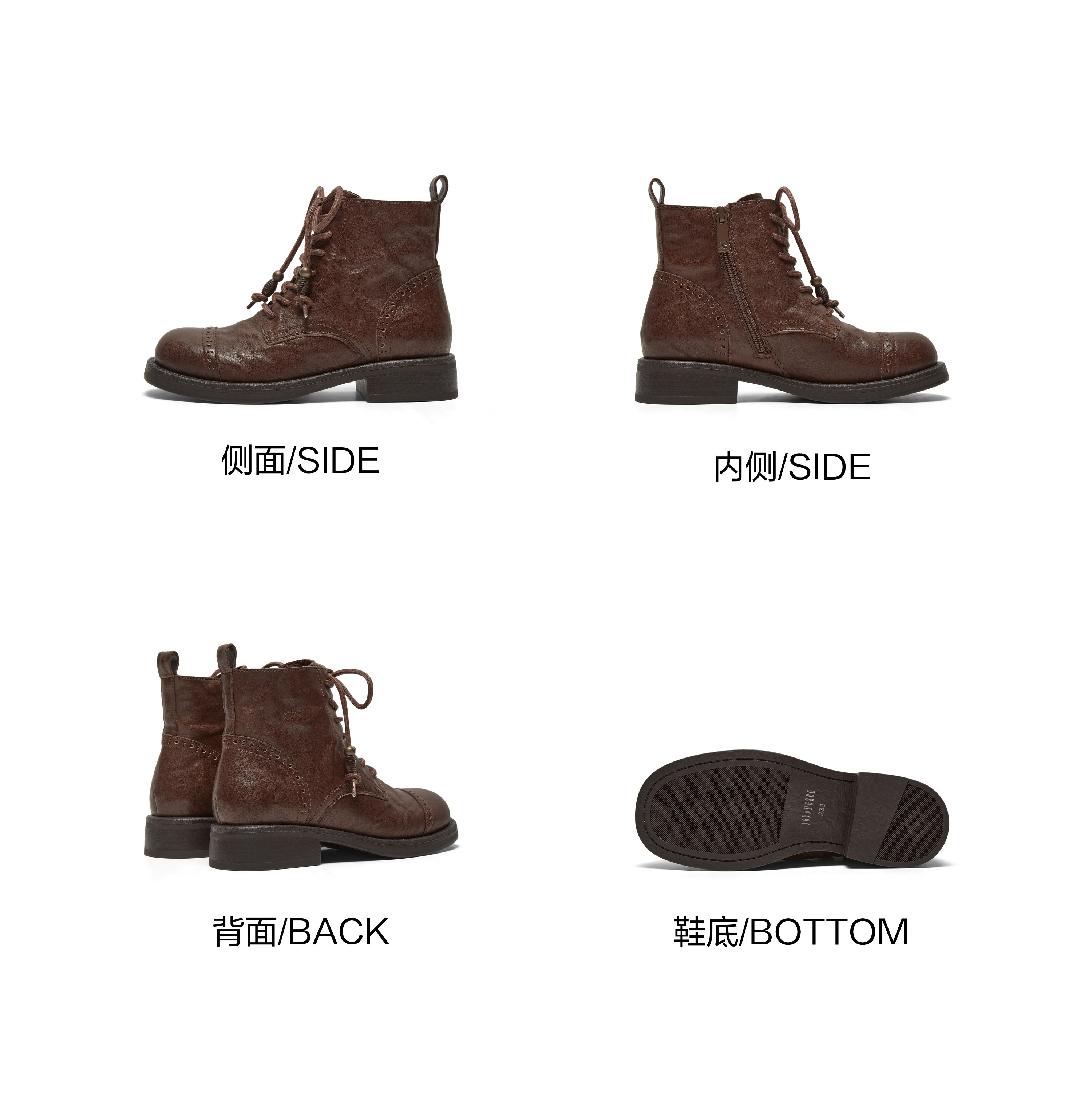 | 鞋底材质:橡胶底 | 靴筒内里材质:猪皮革 | 内增高:无 | 鞋面材质:牛皮革 | 闭合方式:侧拉链 |