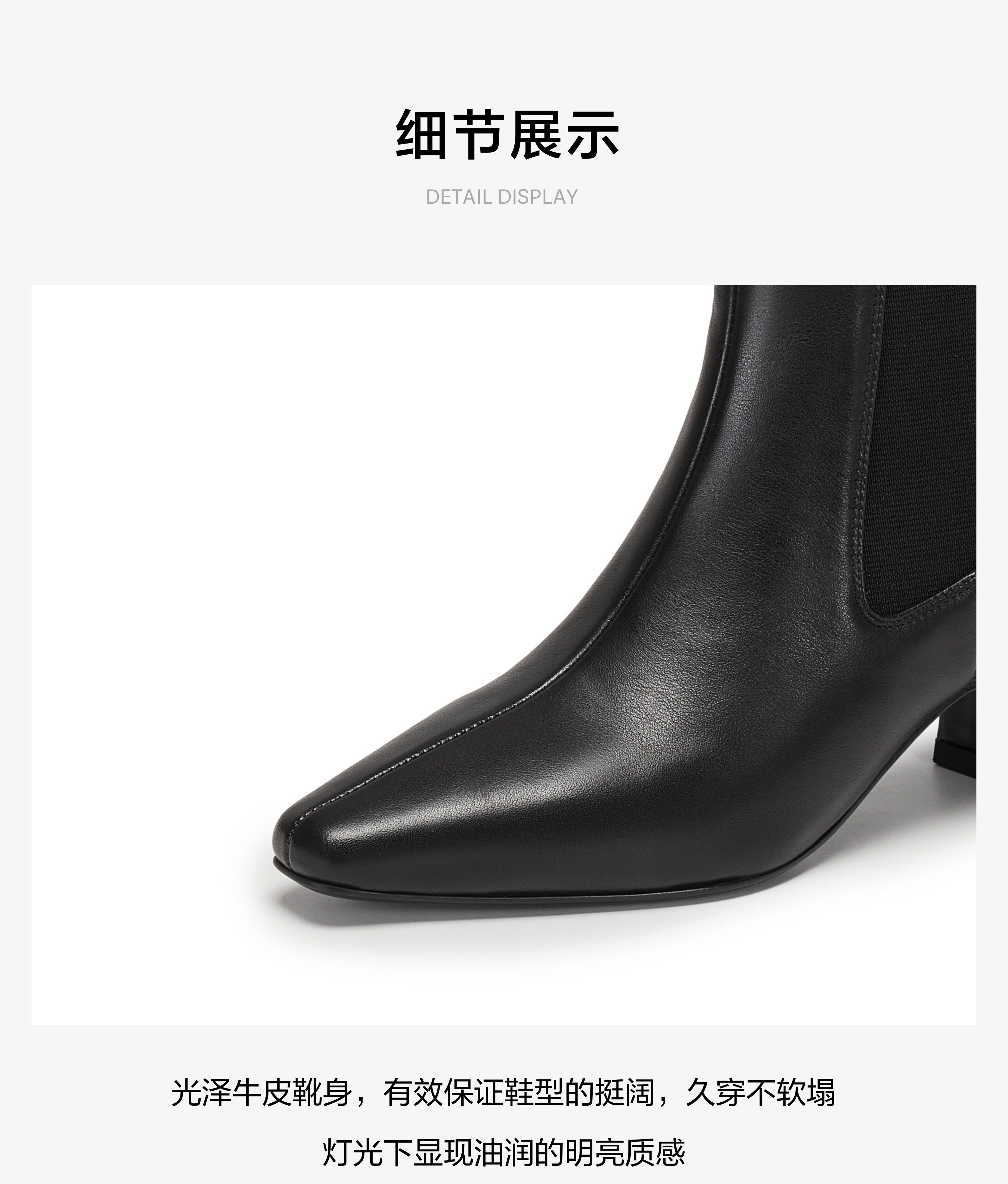 | 帮面材质:牛皮革织物 | 配跟:无 | 靴筒口围:26CM | 上市时间:2025年冬季 | 鞋类流行款式:切尔西靴 |