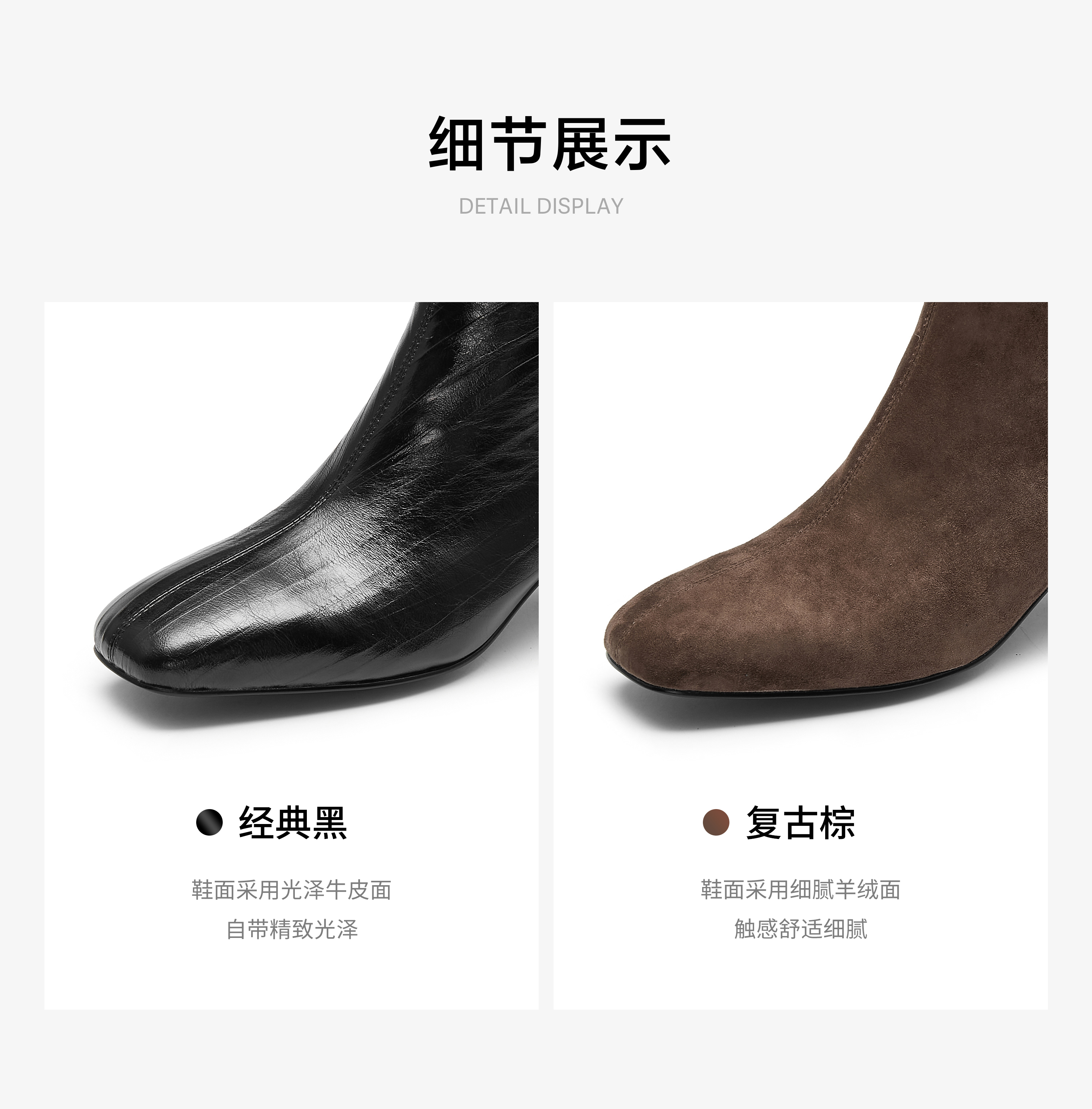 | 帮面材质:羊皮 | 配跟:无 | 上市时间:2024年冬季 | 鞋类流行款式:时装靴 | 鞋头款式:方头 |