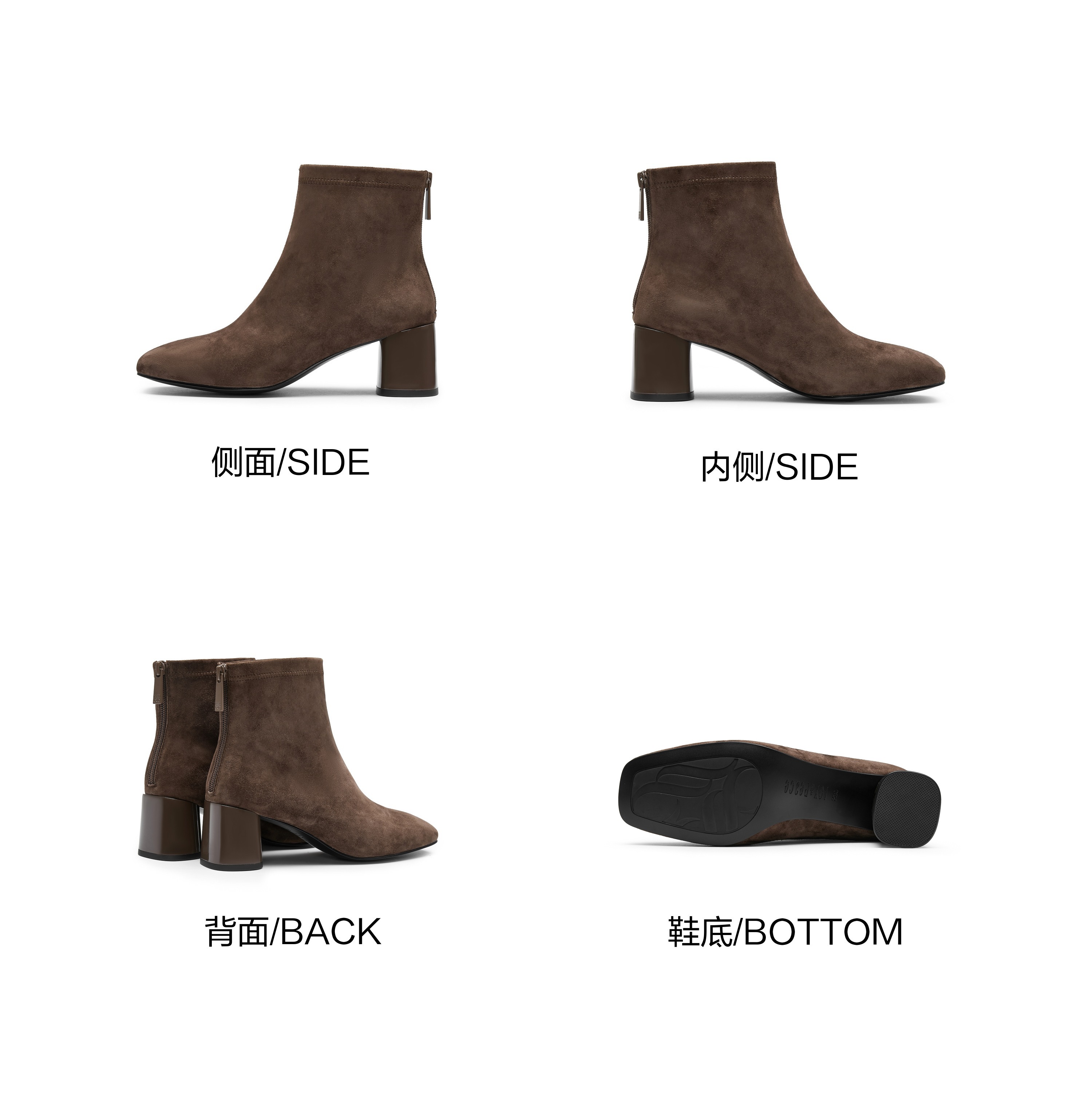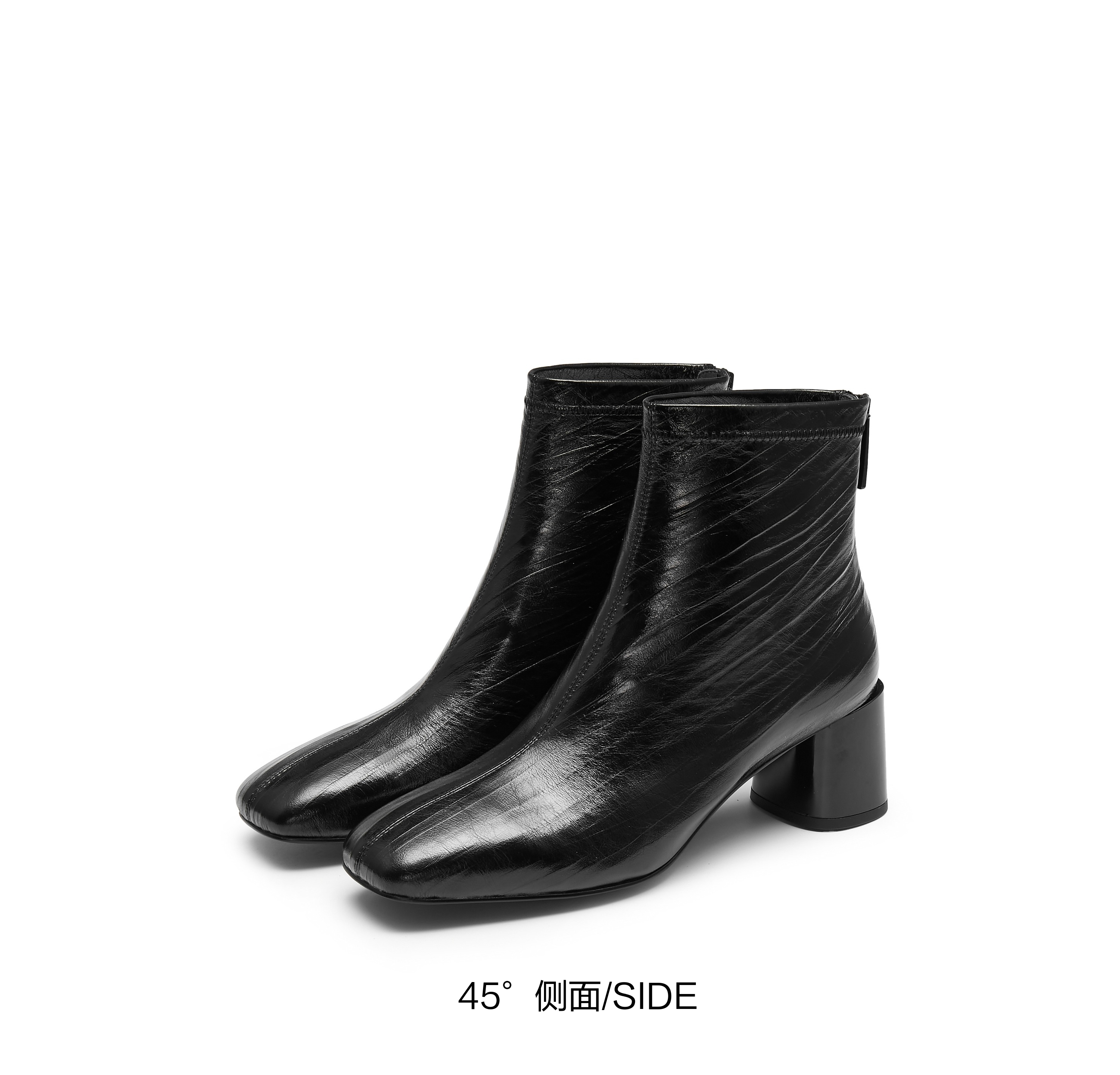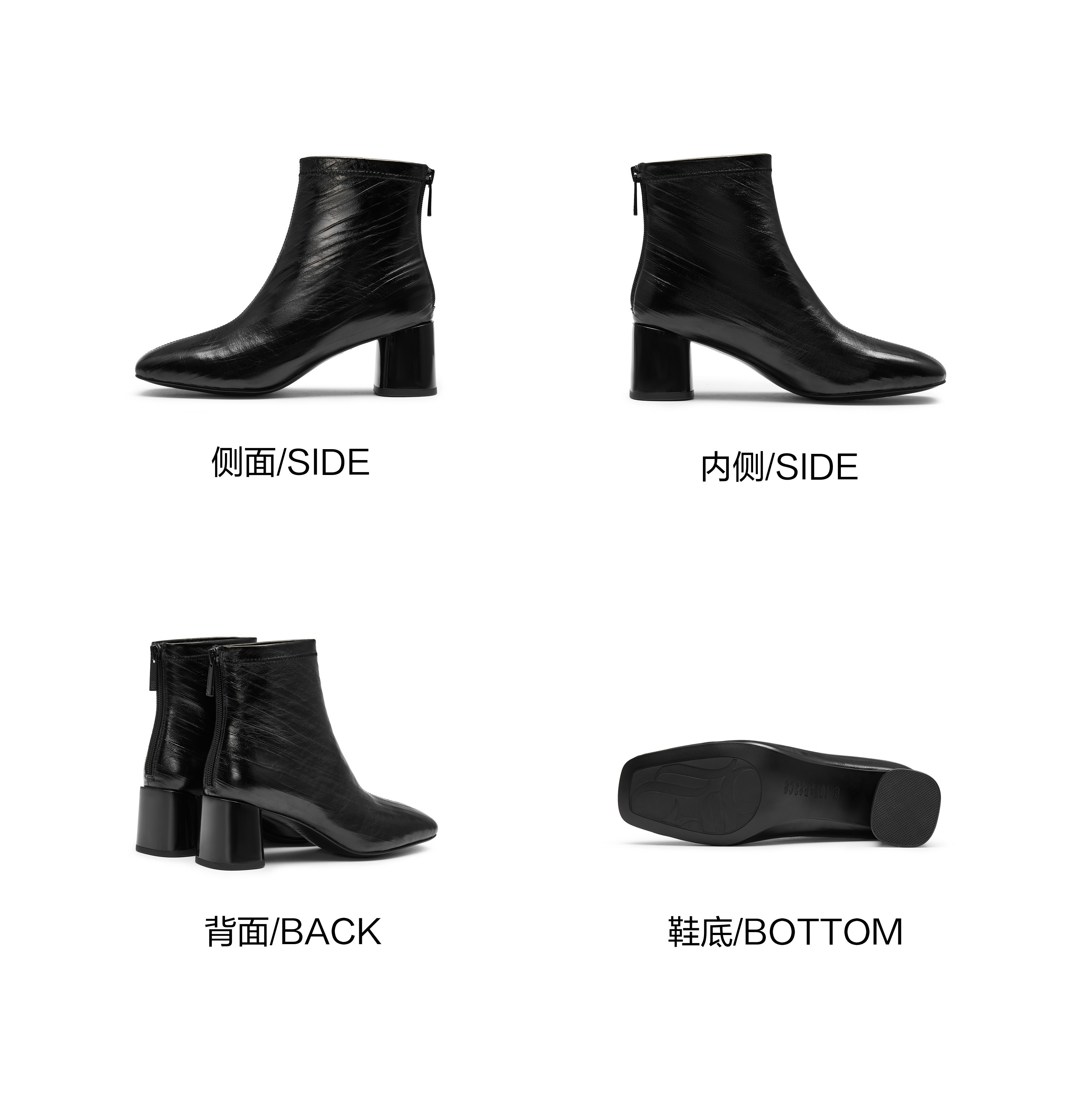 | 鞋底材质:橡胶底 | 靴筒内里材质:织物 | 鞋面材质:羊皮革 | 闭合方式:后拉链 | 靴筒口围:24.5CM |