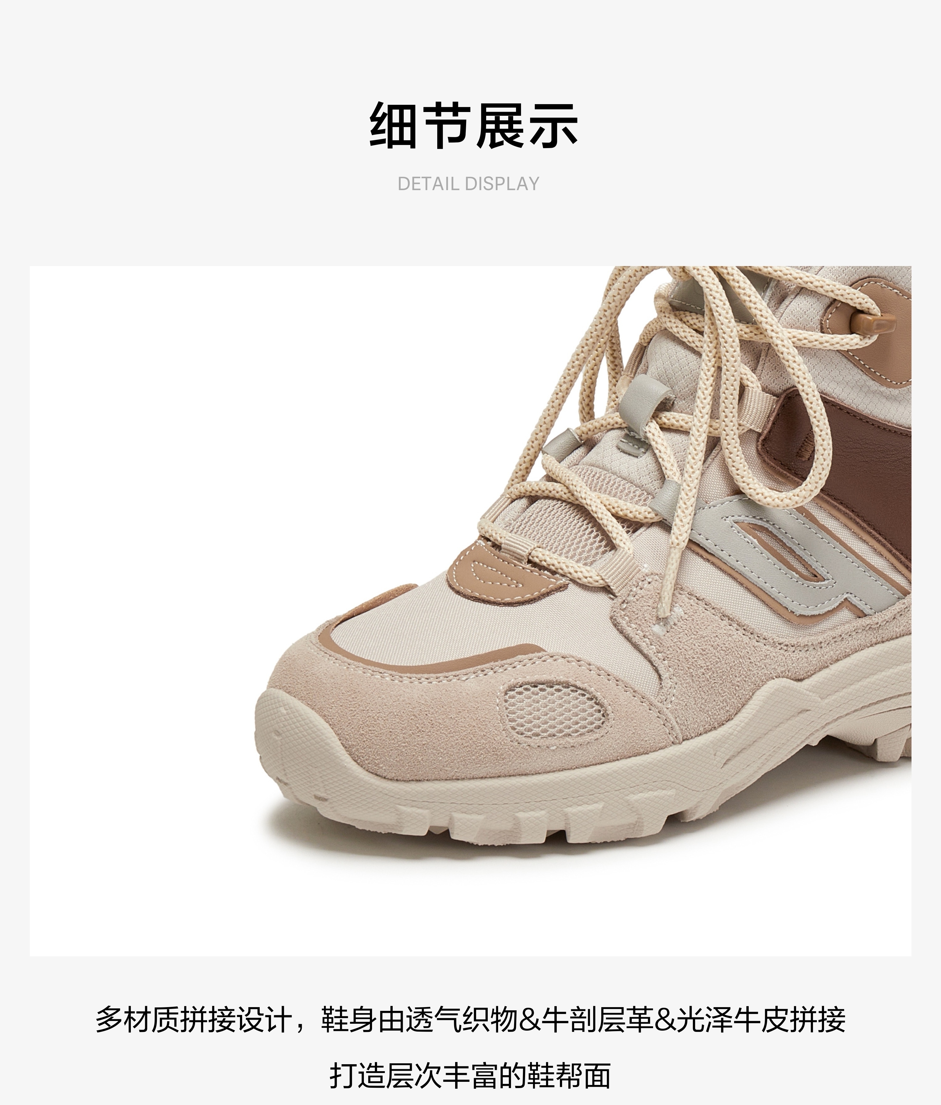 | 鞋底材质:橡胶底 | 靴筒内里材质:织物 | 内增高:无 | 鞋面材质:牛皮革牛剖层革织物 | 闭合方式:系带 |