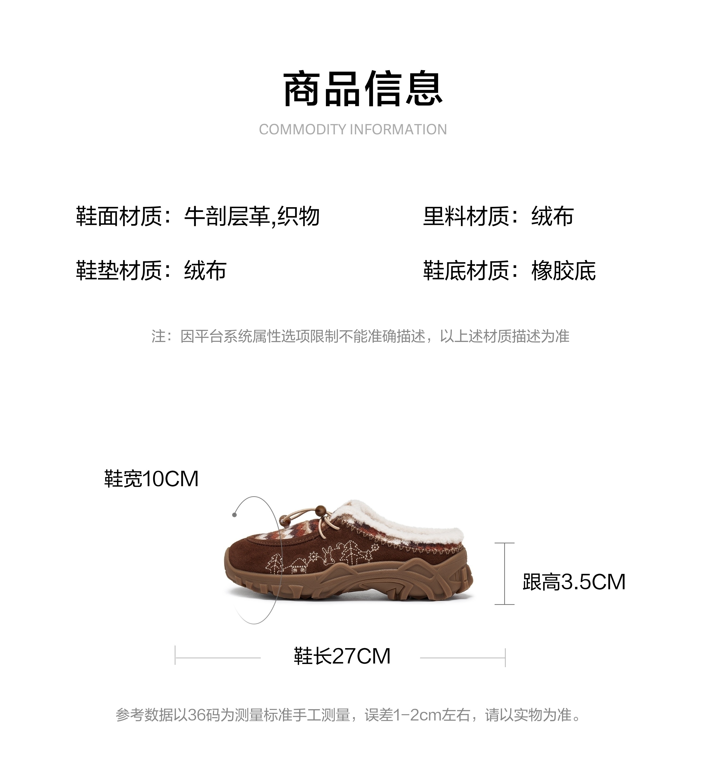 | 里料材质:绒布 | 上市时间:2025年秋季 | 制鞋工艺:车线胶粘 | 款式季节:秋季 | 鞋垫材质:绒布 |