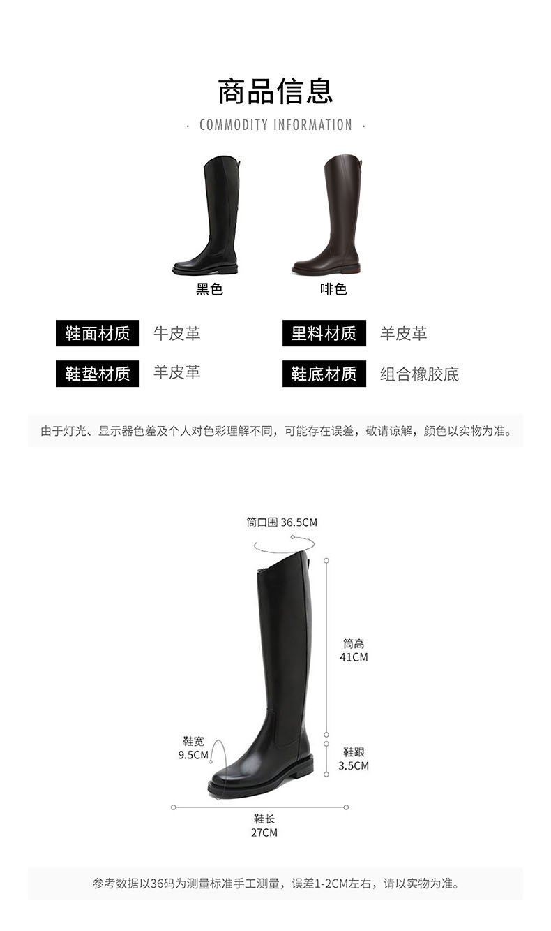 | 靴筒口围:36.5CM | 配跟:无 | 上市时间:2025年冬季 | 鞋类流行款式:骑士靴 | 鞋头款式:圆头 |