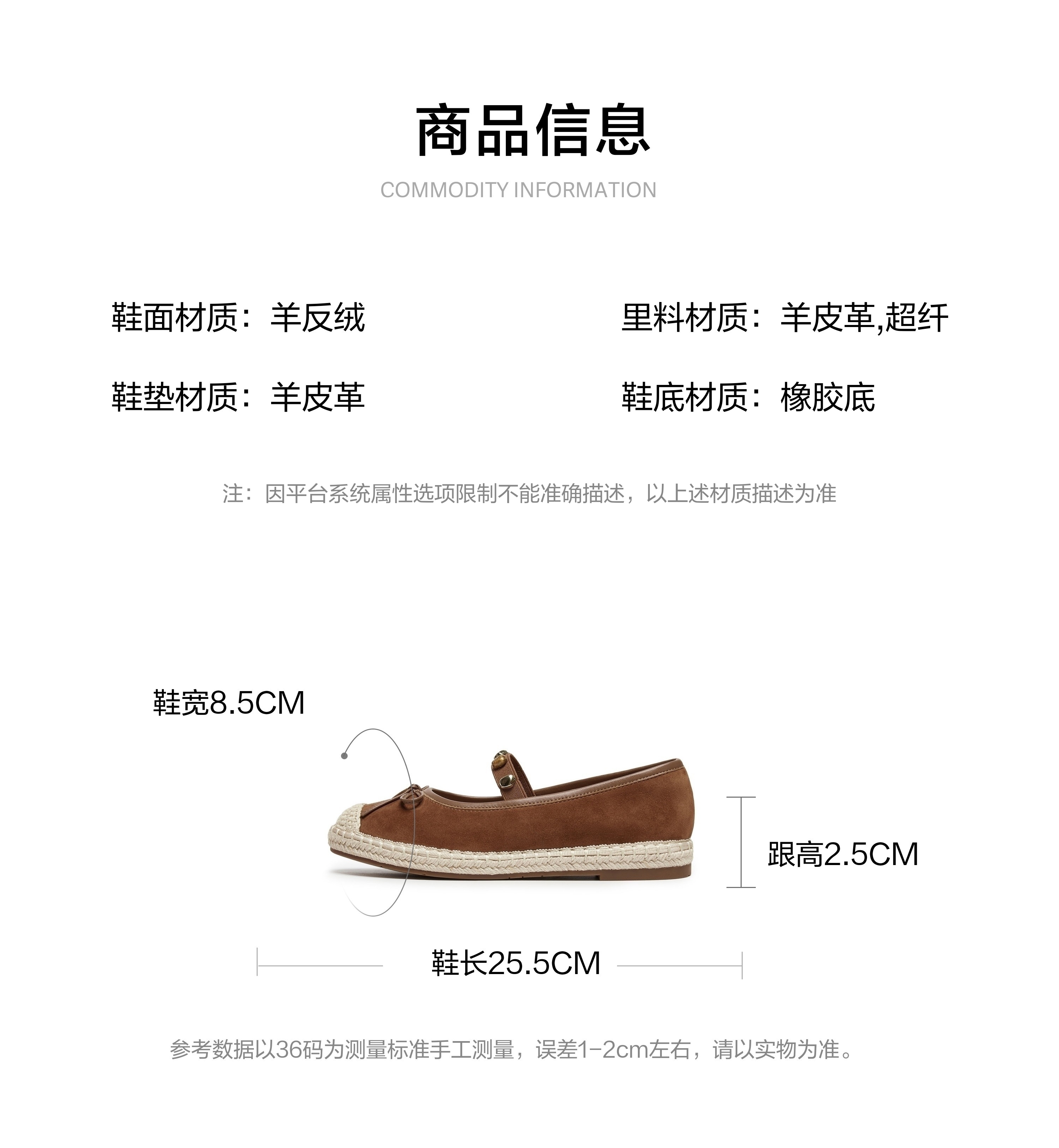 | 鞋面内里材质:超纤羊皮革 | 色系:棕色 | 跟高数值:2.5CM | 配跟:无 | 性别:女子 |