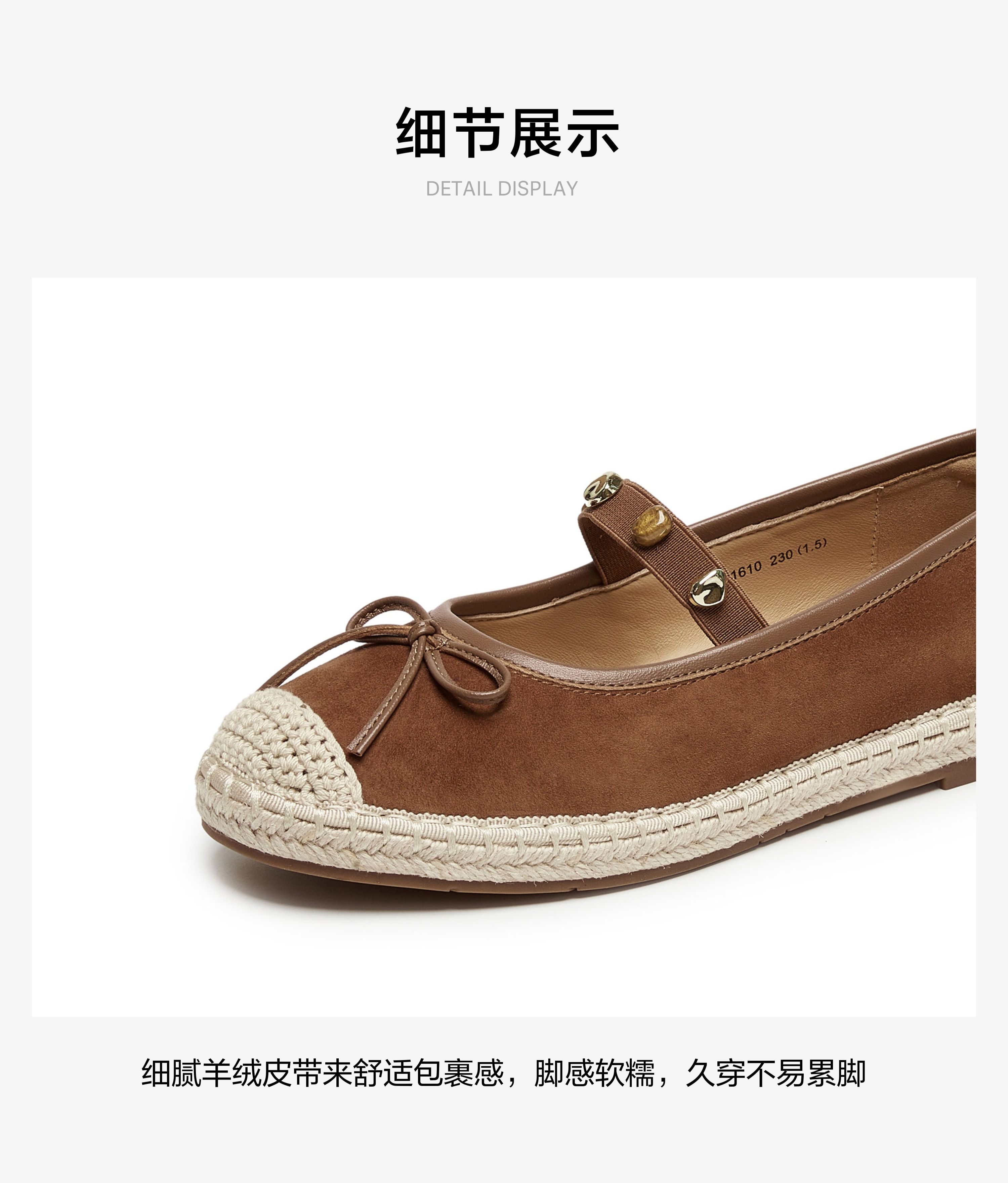 | 鞋头款式:圆头 | 鞋底材质:橡胶底 | 鞋面图案:纯色 | 鞋跟形状:平跟 | 鞋面材质:羊反绒 |
