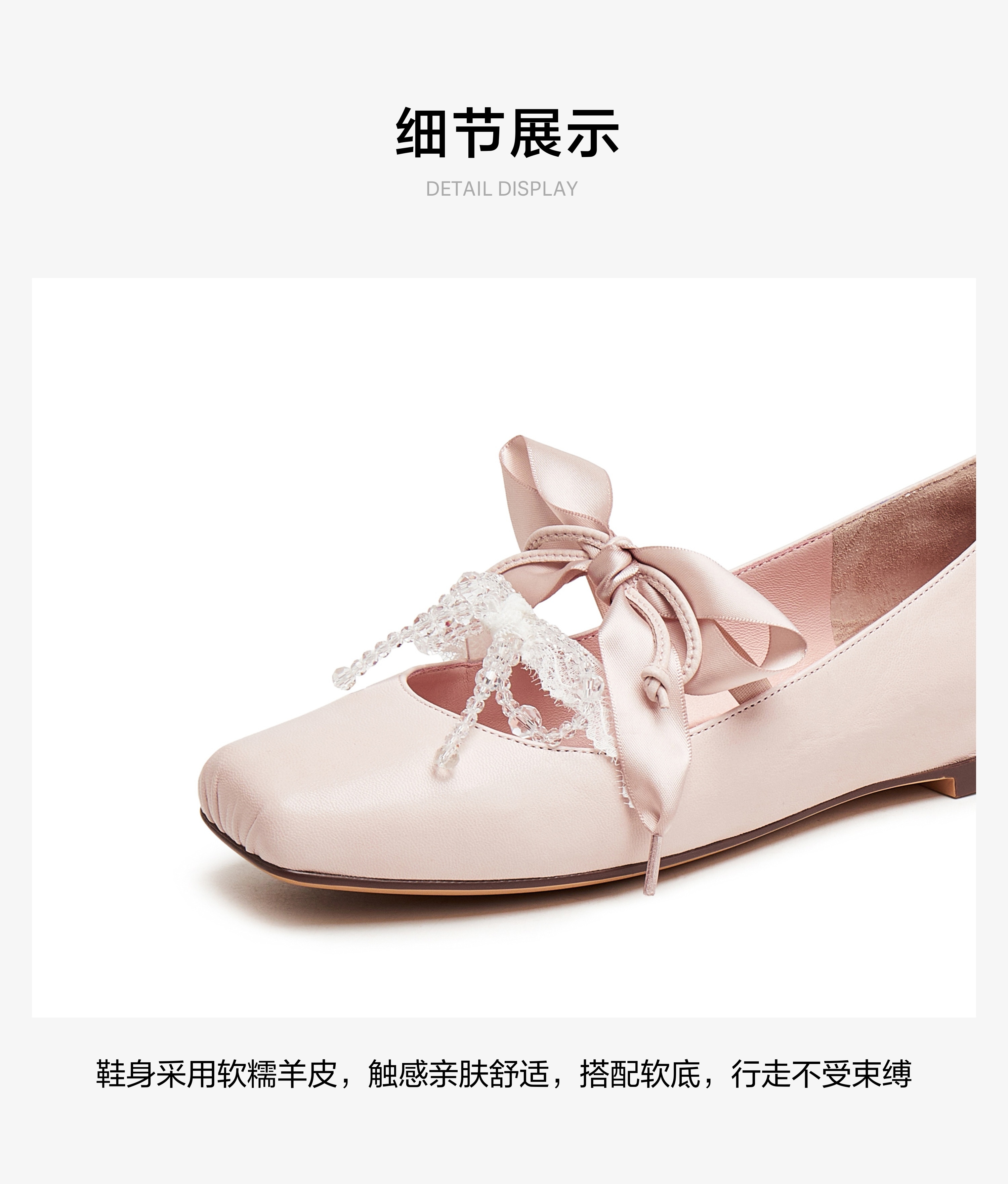 | 色系:粉色 | 跟高数值:2CM | 性别:女子 | 里料材质:羊皮革 | 制鞋工艺:车线胶粘 |