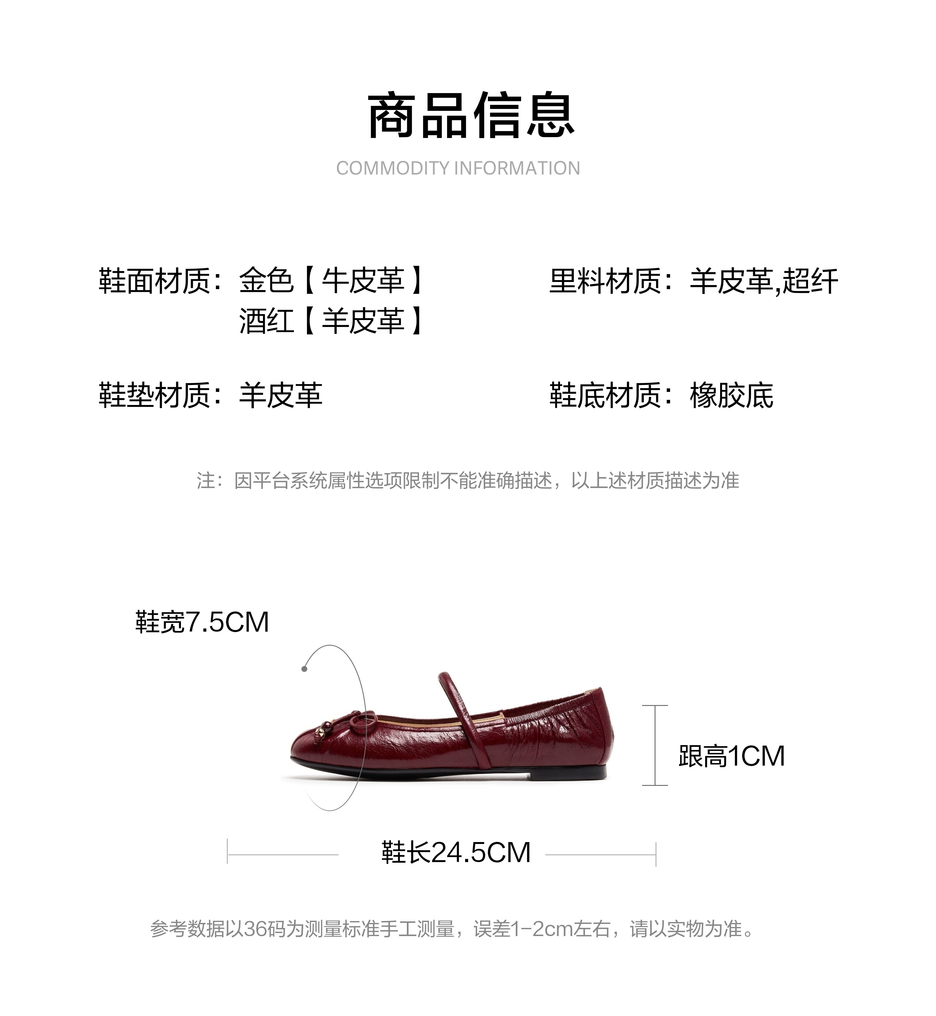 | 前掌高度:无 | 皮质特征:羊皮革 | 防水台高度:无 | 鞋类流行款式:玛丽珍鞋 |