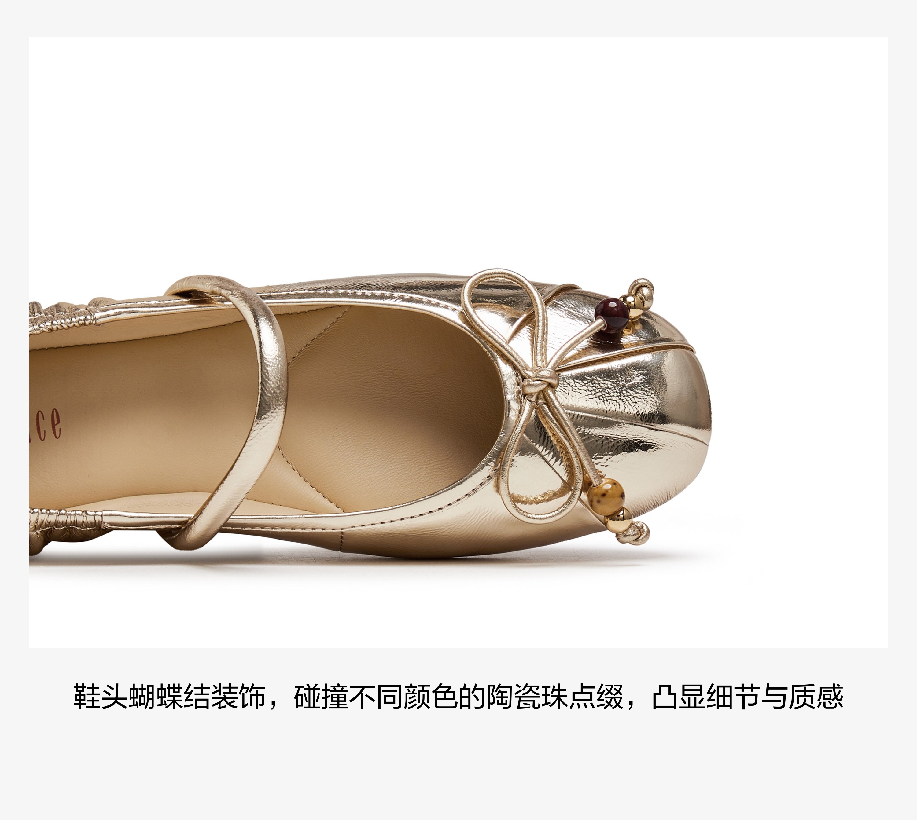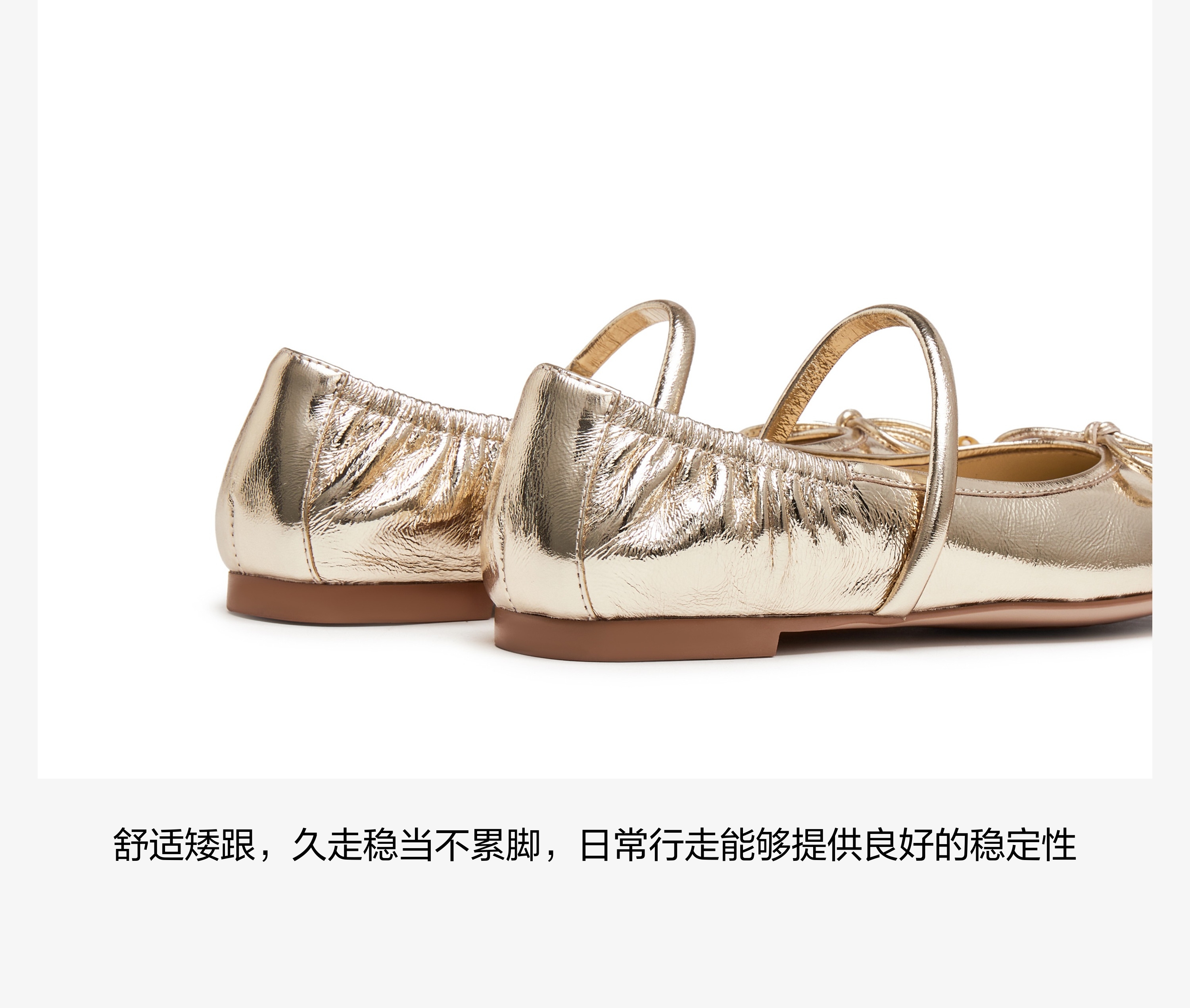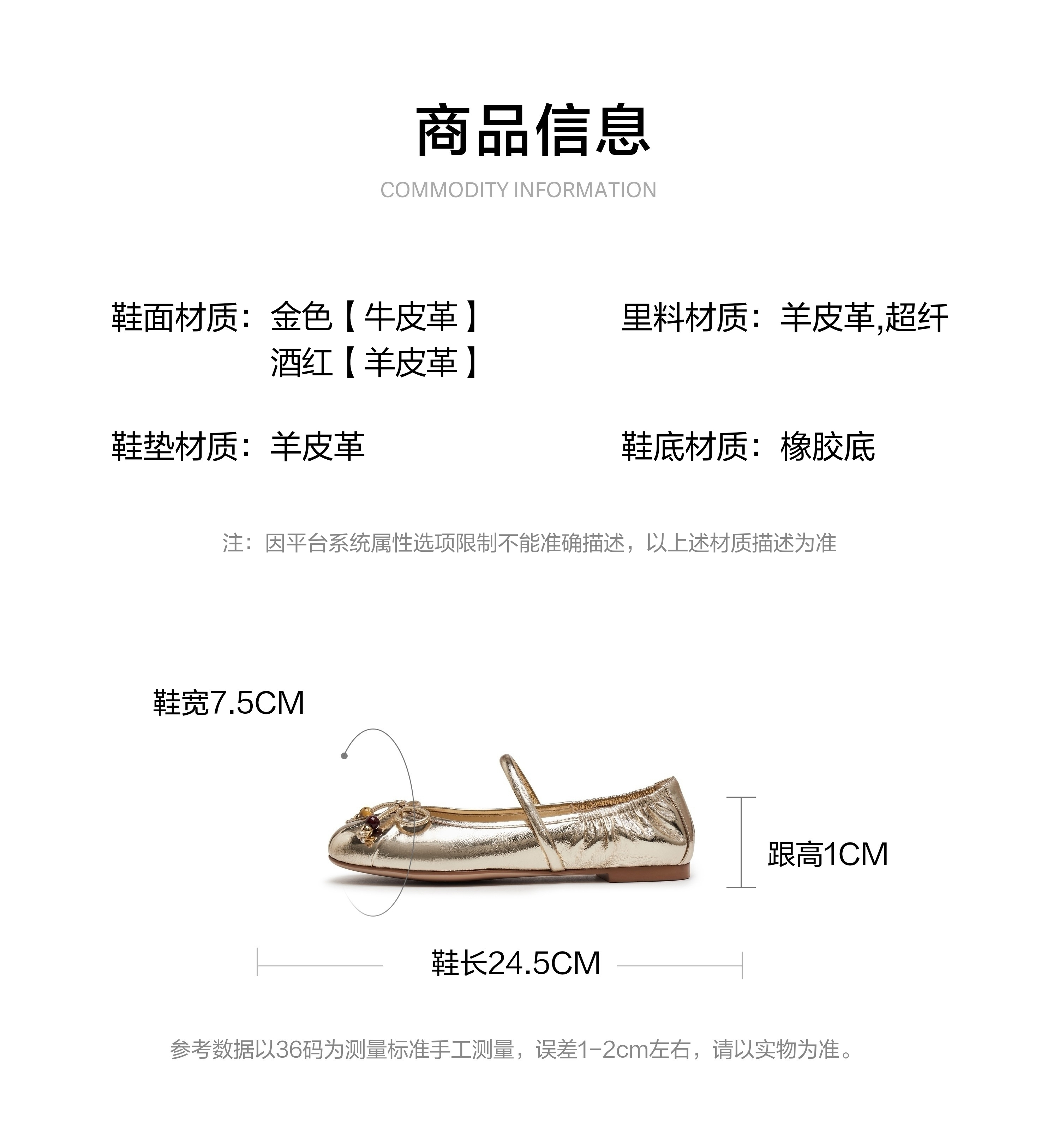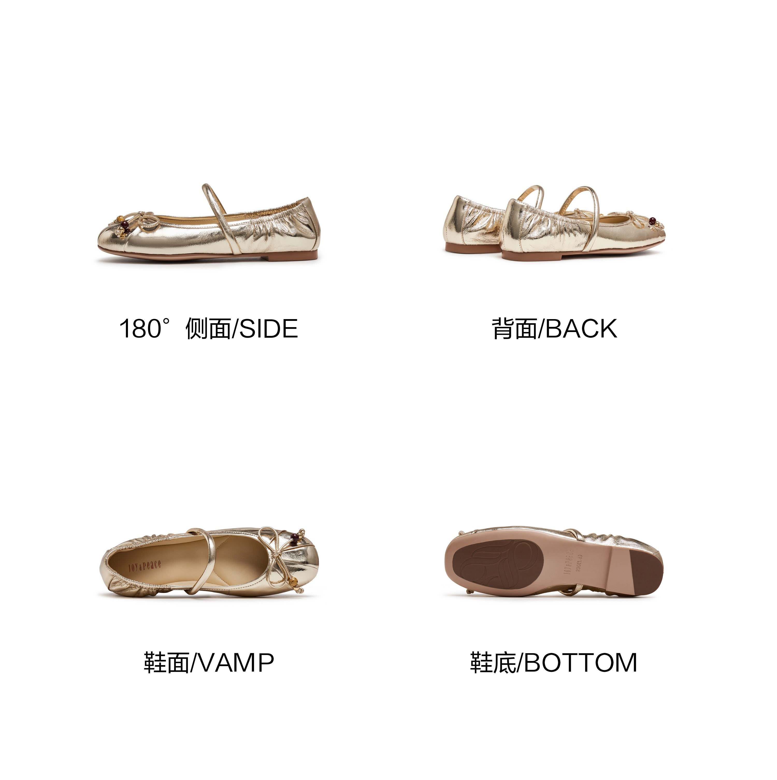 | 鞋面内里材质:超纤羊皮革 | 跟高数值:1CM | 色系:金色 | 配跟:无 | 性别:女子 |