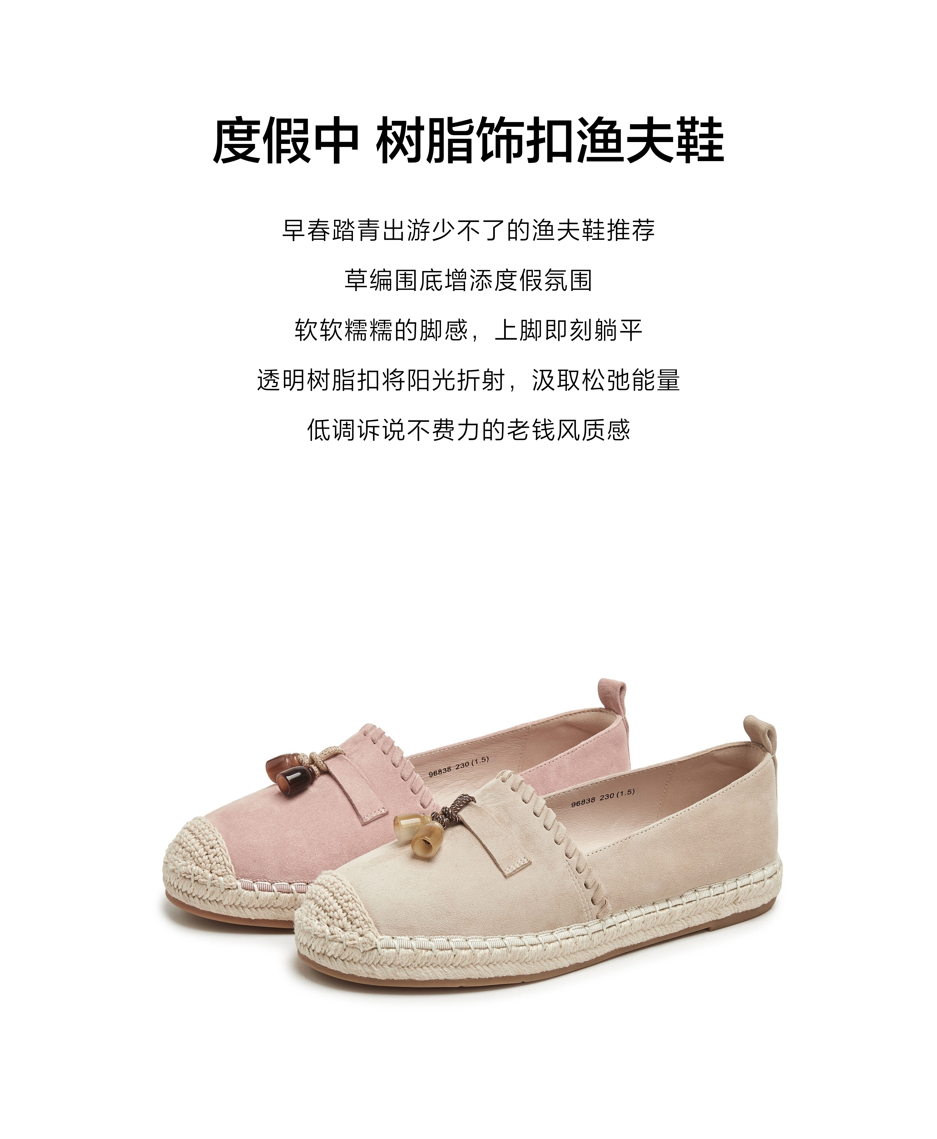 | 上市时间:2025年春季 | 鞋类流行款式:渔夫鞋 | 鞋头款式:圆头 | 执行标准:舒适上班鞋Q/LR001-2023 | 跟高范围:低跟鞋(小于3CM) |