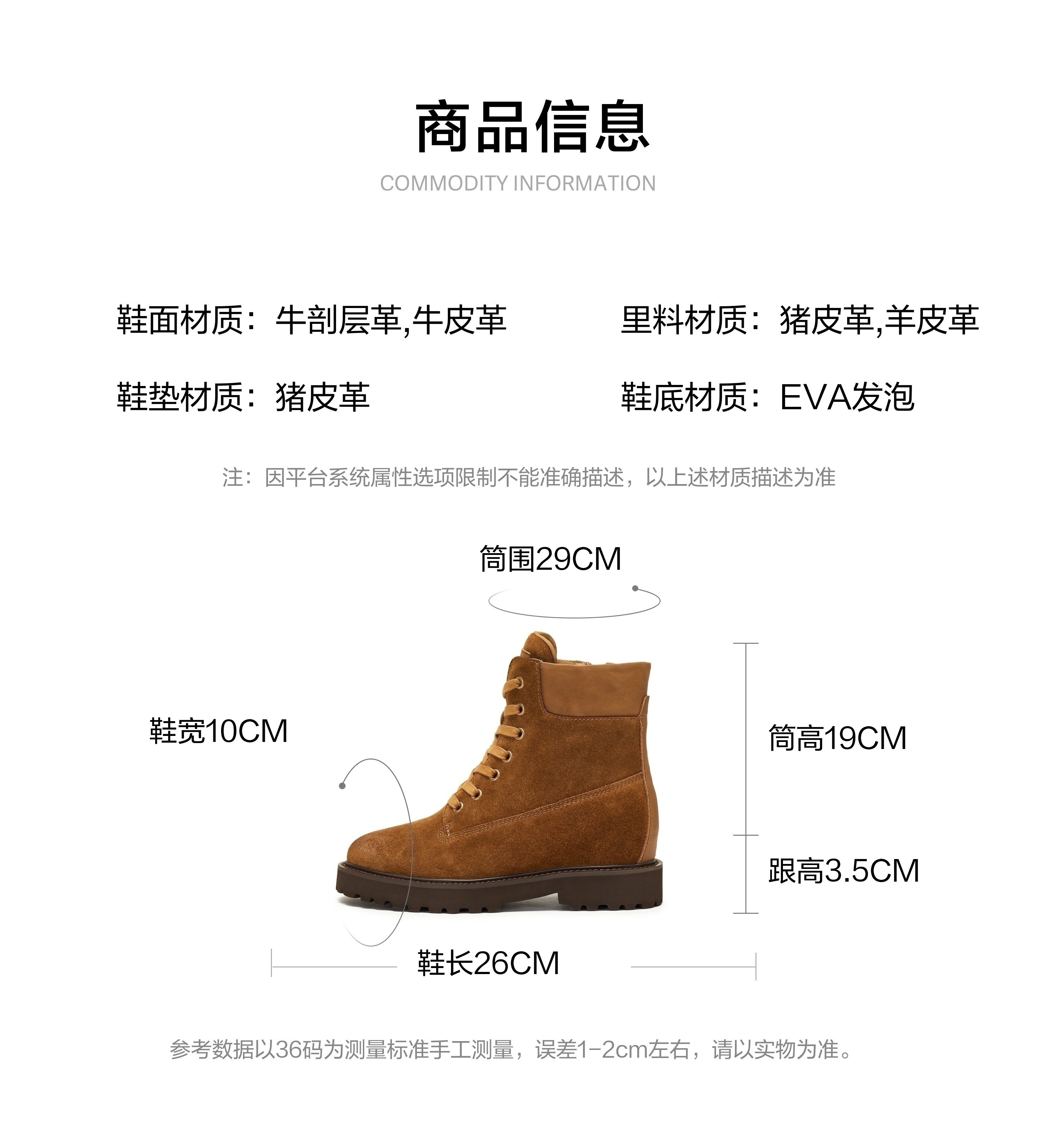 | 款式季节:冬季 | 前掌高度:2CM | 皮质特征:牛剖层革 | 防水台高度:无 |