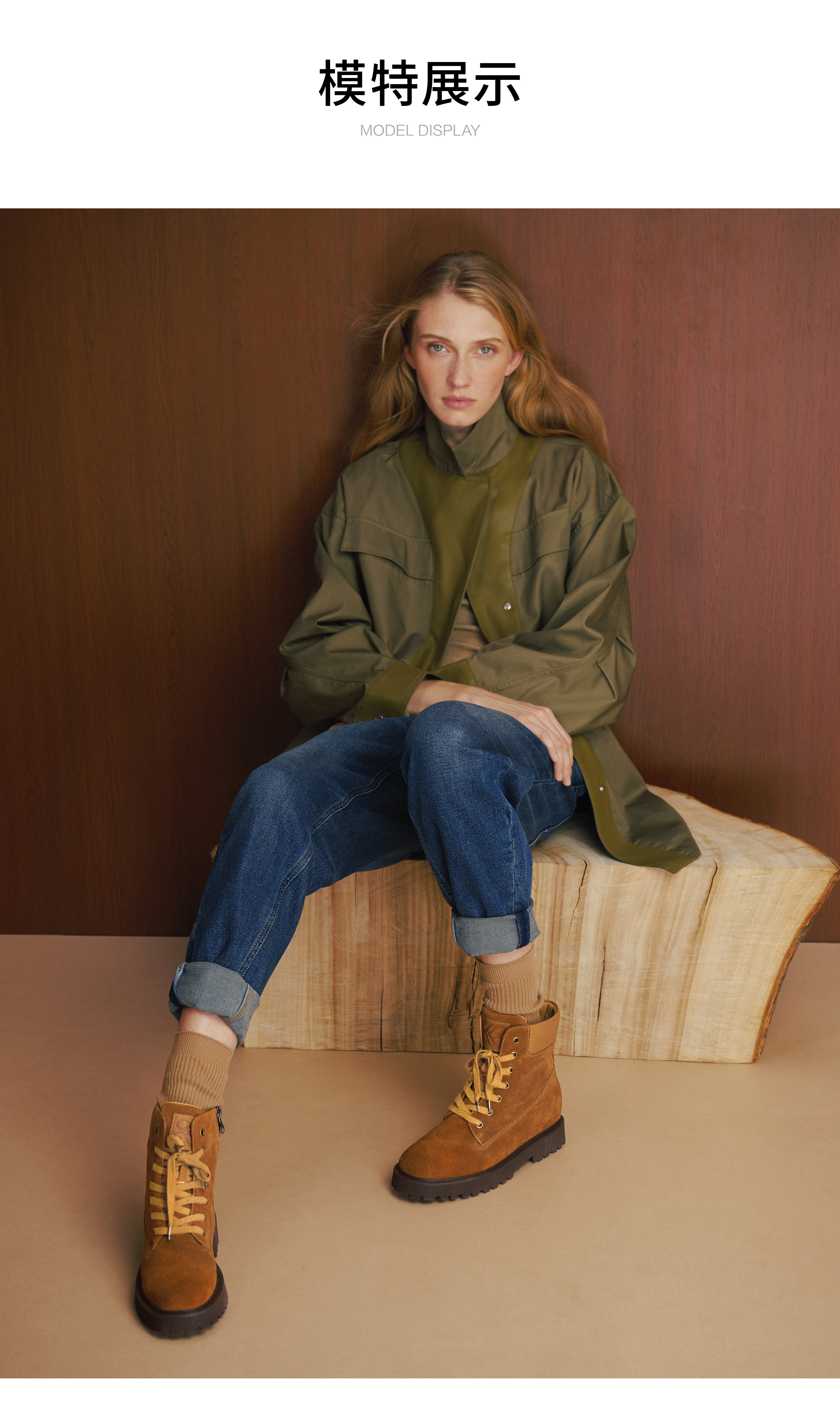 | 鞋底材质:EVA发泡 | 靴筒内里材质:羊皮革猪皮革 | 内增高:无 | 鞋面材质:牛皮革牛剖层革 | 闭合方式:侧拉链 |