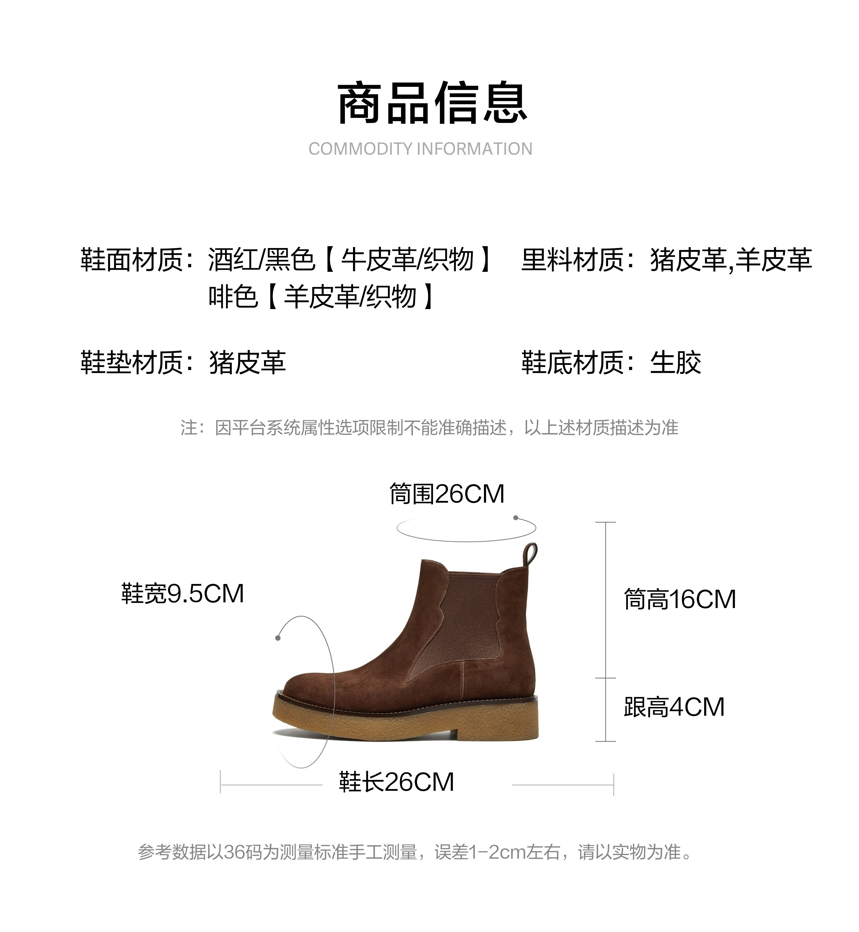 | 参考鞋宽(女):9.5CM | 风格:休闲 | 鞋面内里材质:猪皮革羊皮革 | 色系:咖啡色 | 跟高数值:4CM |