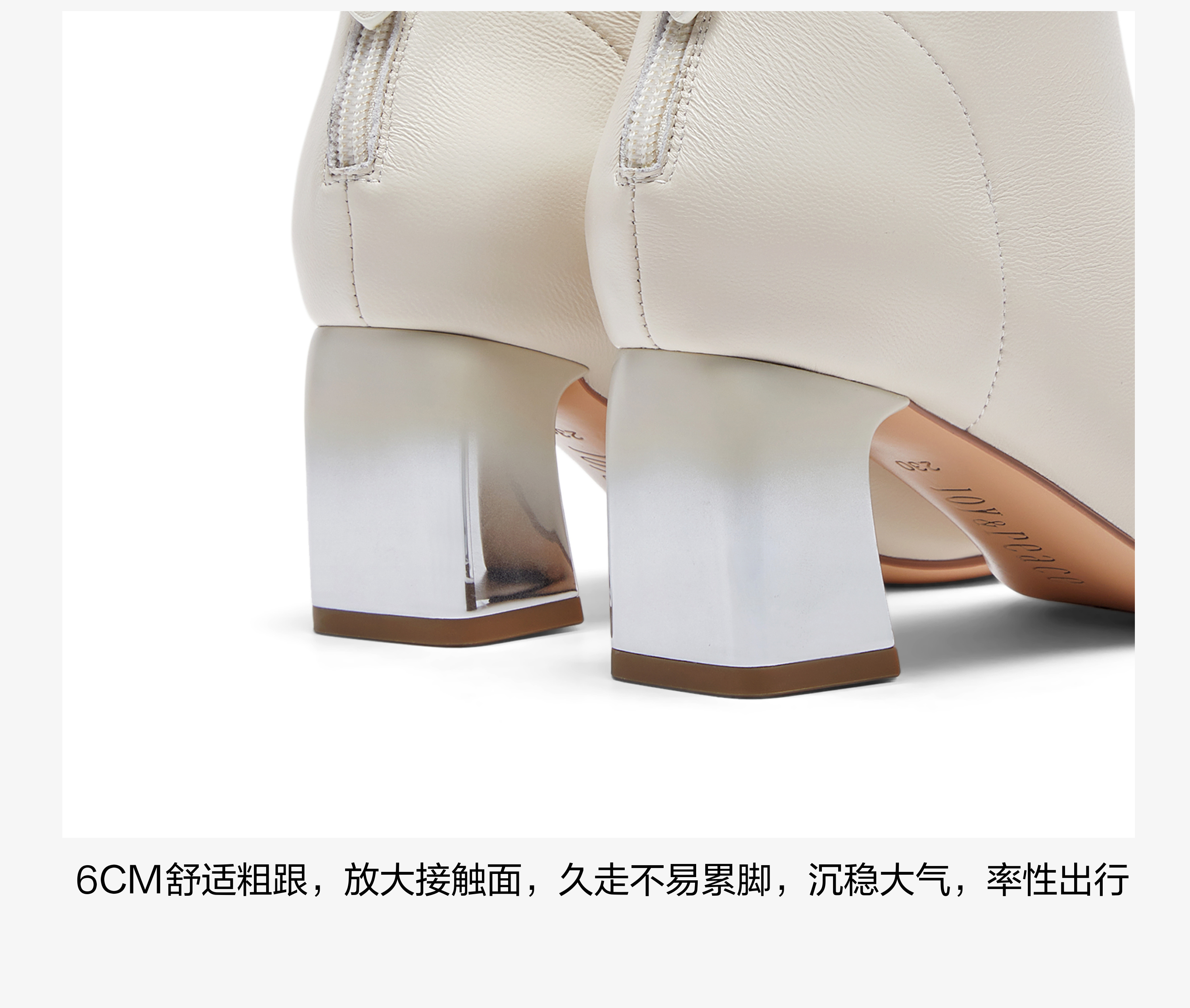 | 参考鞋宽(女):8CM | 风格:优雅 | 色系:米色 | 跟高数值:6CM | 筒高数值:11.5CM |
