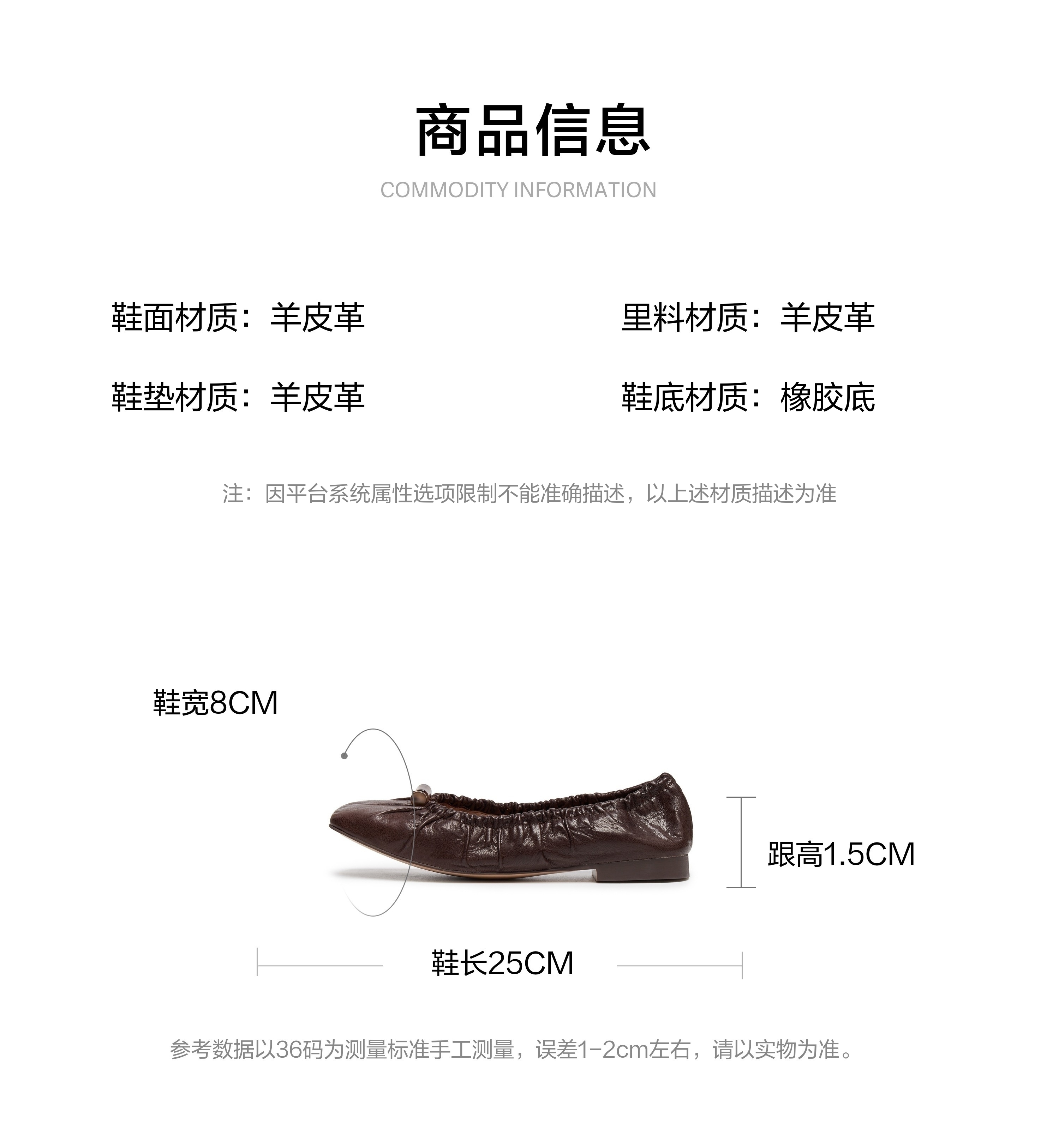 | 鞋面内里材质:羊皮革 | 色系:棕色 | 跟高数值:1.5CM | 配跟:无 | 性别:女子 |