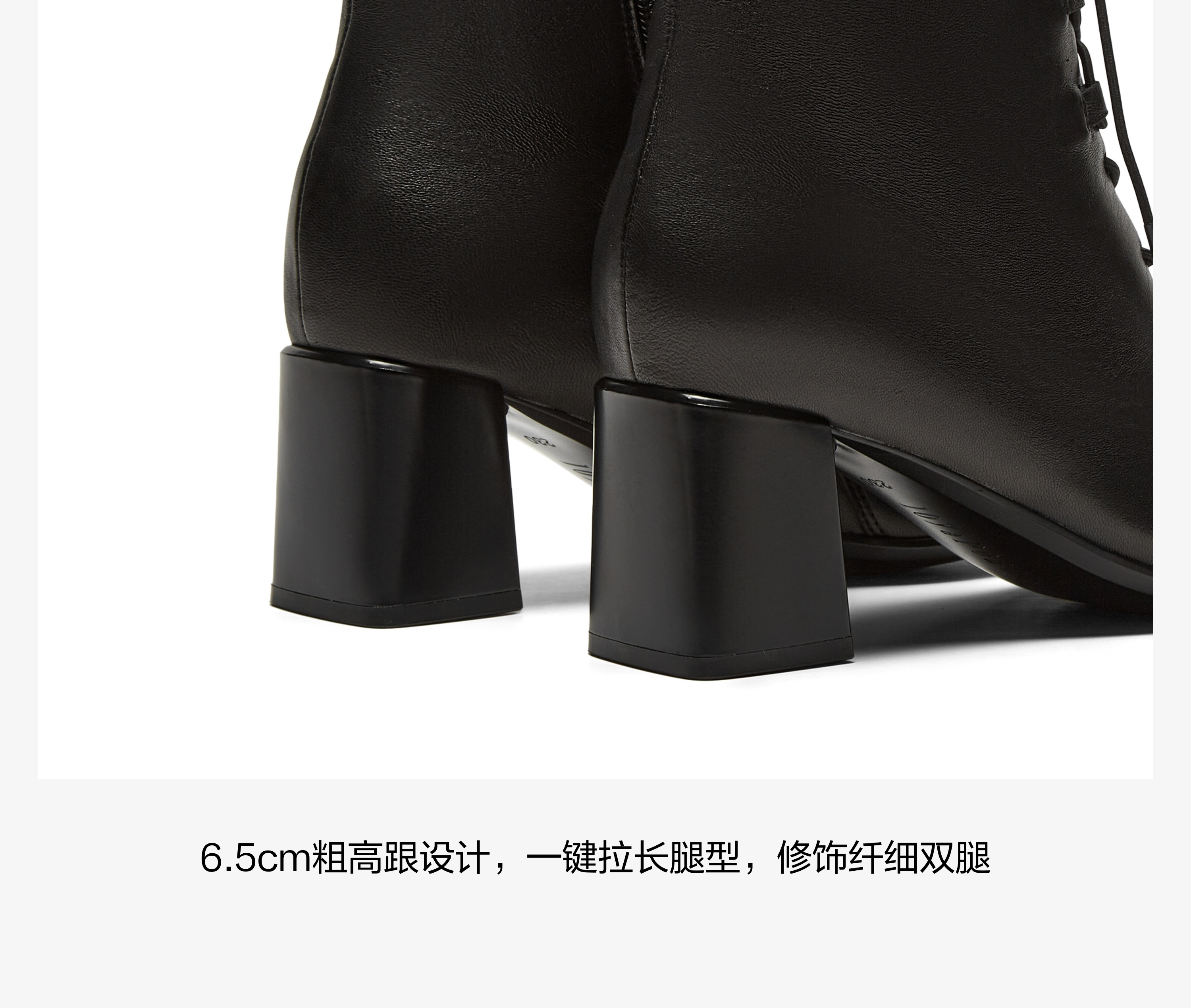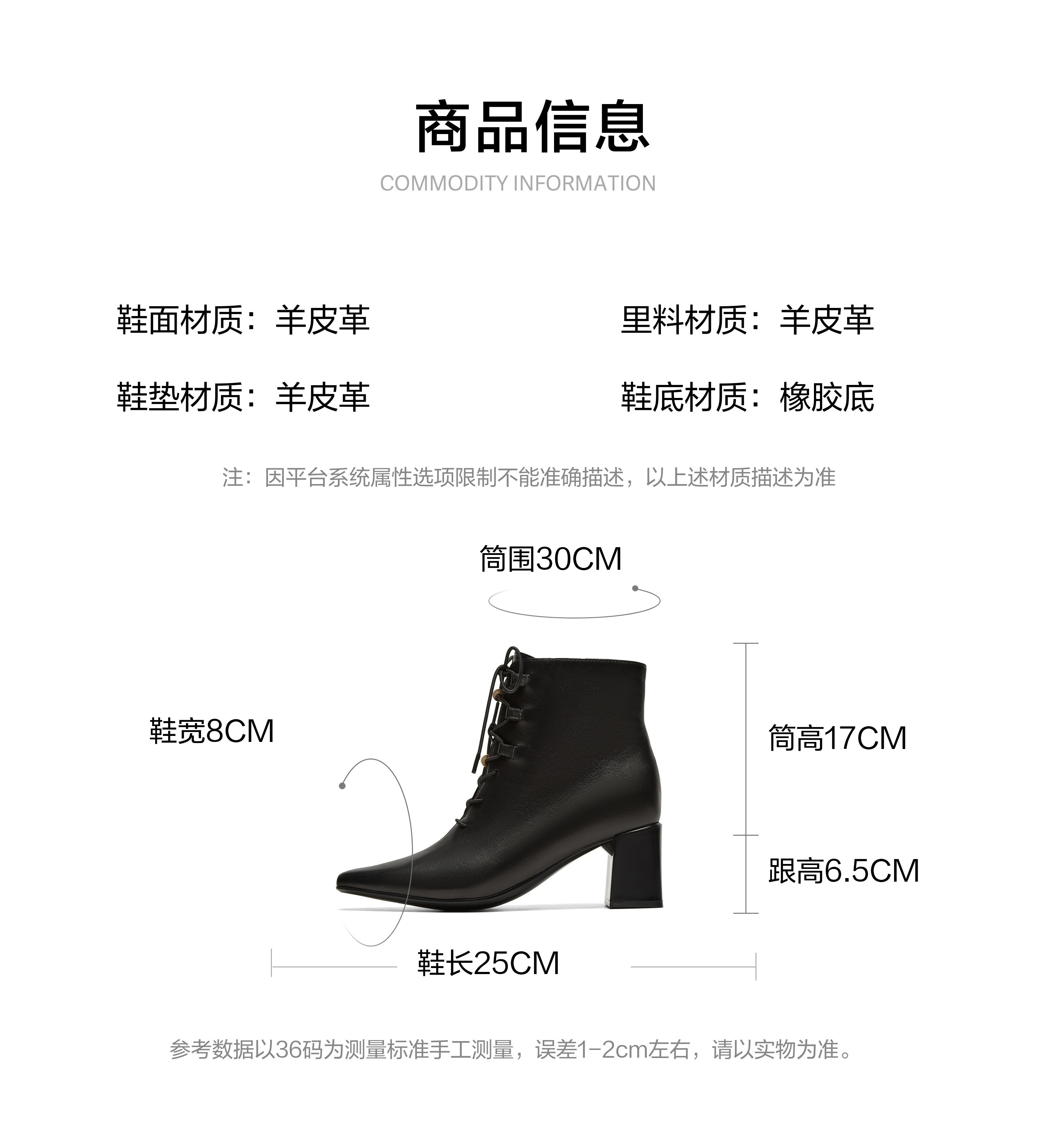 | 参考鞋宽(女):8CM | 风格:帅气 | 鞋面内里材质:羊皮革 | 色系:黑色 | 跟高数值:6.5CM |