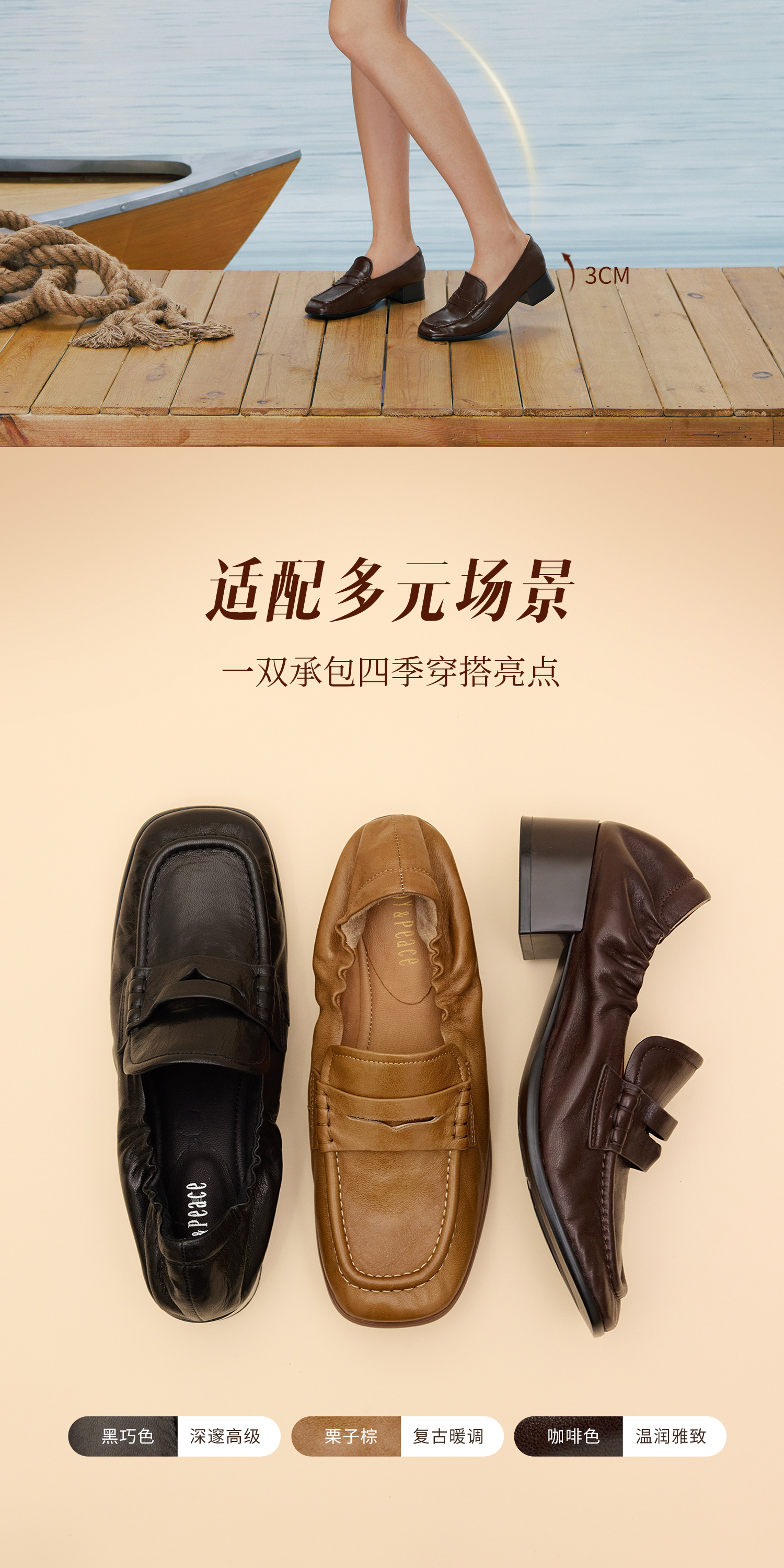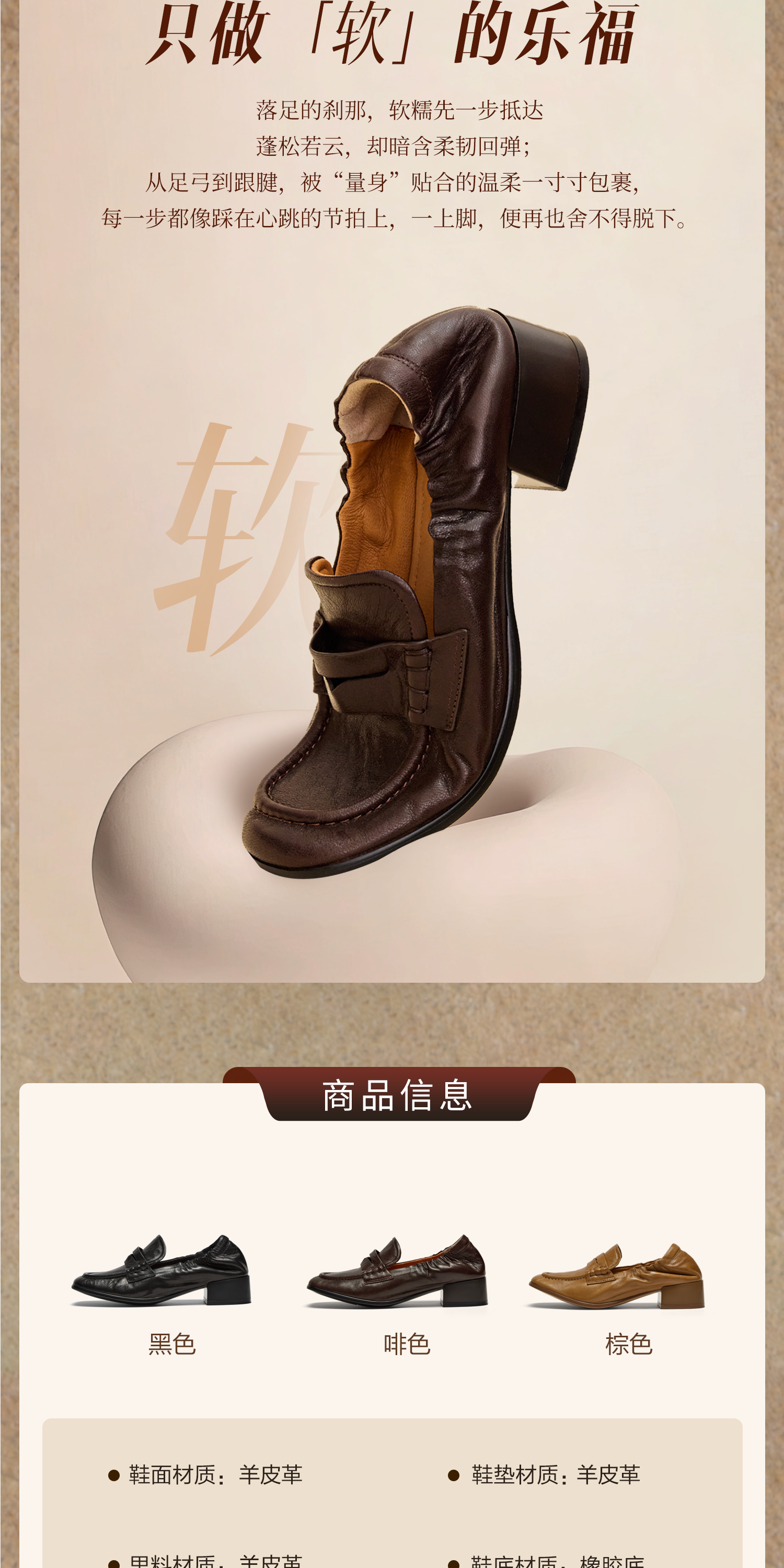 | 鞋面内里材质:羊皮革 | 跟高数值:3CM | 色系:棕色 | 适用人群:女子 | 性别:女子 |